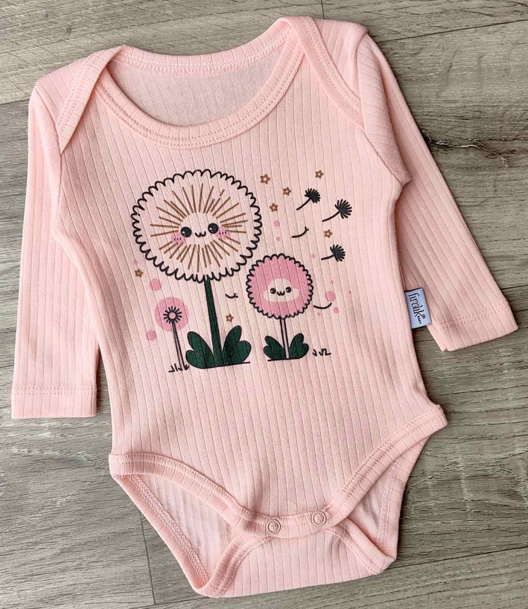Боді Findik "Одуванчики" персиковий, дівчинка 3-6-9-12-18 місяців оптом уп. - 5 шт.