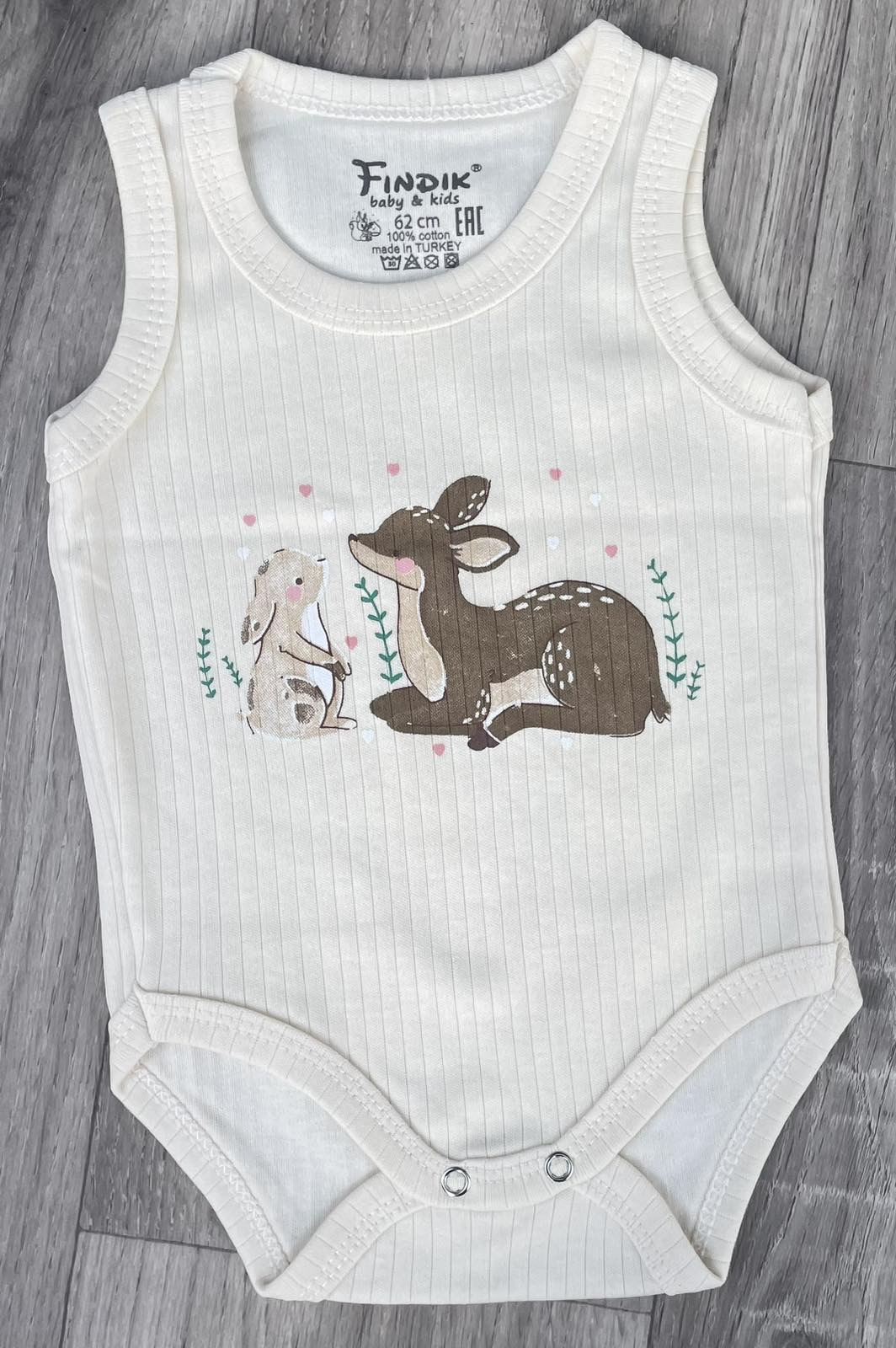 Боді Findik «Оленя» пісочний, унісекс 3-6-9-12 місяців оптом уп. - 5 шт.