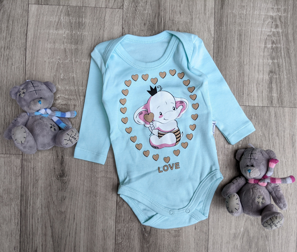Боди Findik "Слоник", бирюзовый, девочка 3-6-9-12-18 месяцев оптом уп. - 5 шт.