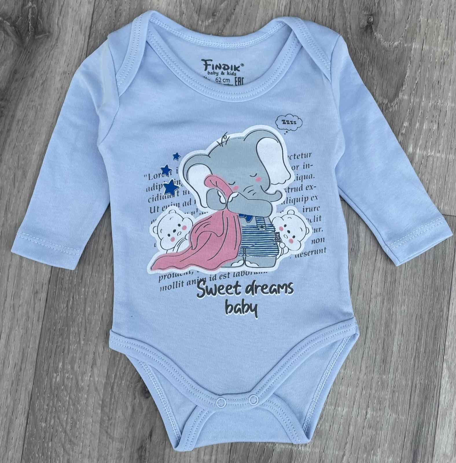 Боді Findik «Слоник» блакитний, хлопчик 3-6-9-12-18 місяців оптом уп. - 5 шт.