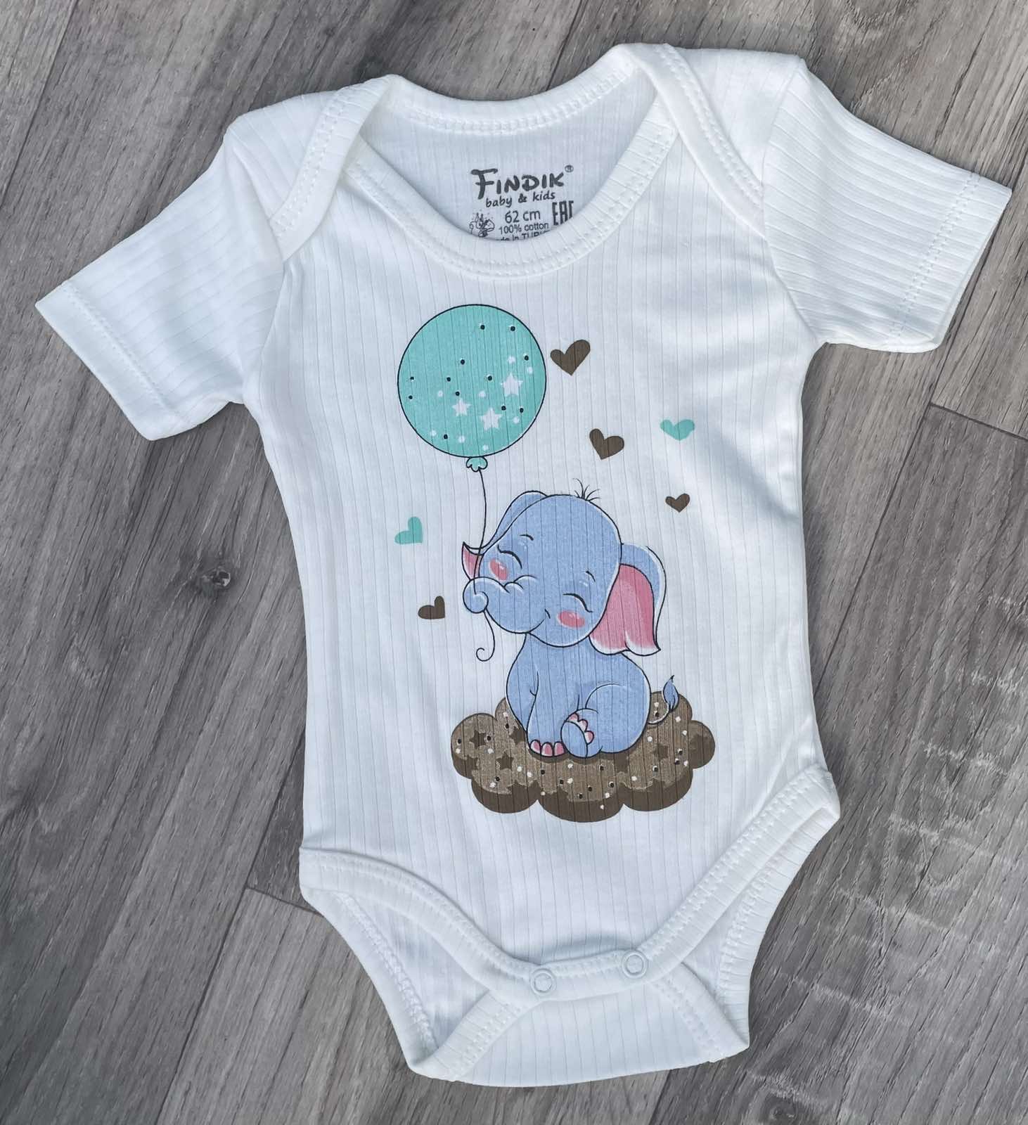 Боді Findik «Слоник» молочний, унісекс 3-6-9-12 місяців оптом уп. - 5 шт.