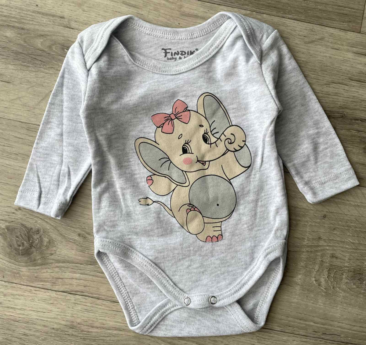 Боді Findik «Слоник» сірий, дівчинка 3-6-9-12-18 місяців оптом уп. - 5 шт.