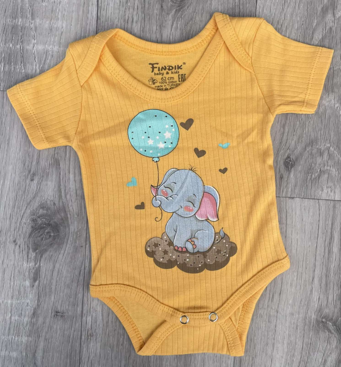 Боді Findik «Слоник» жовтий, унісекс 3-6-9-12 місяців оптом уп. - 5 шт.