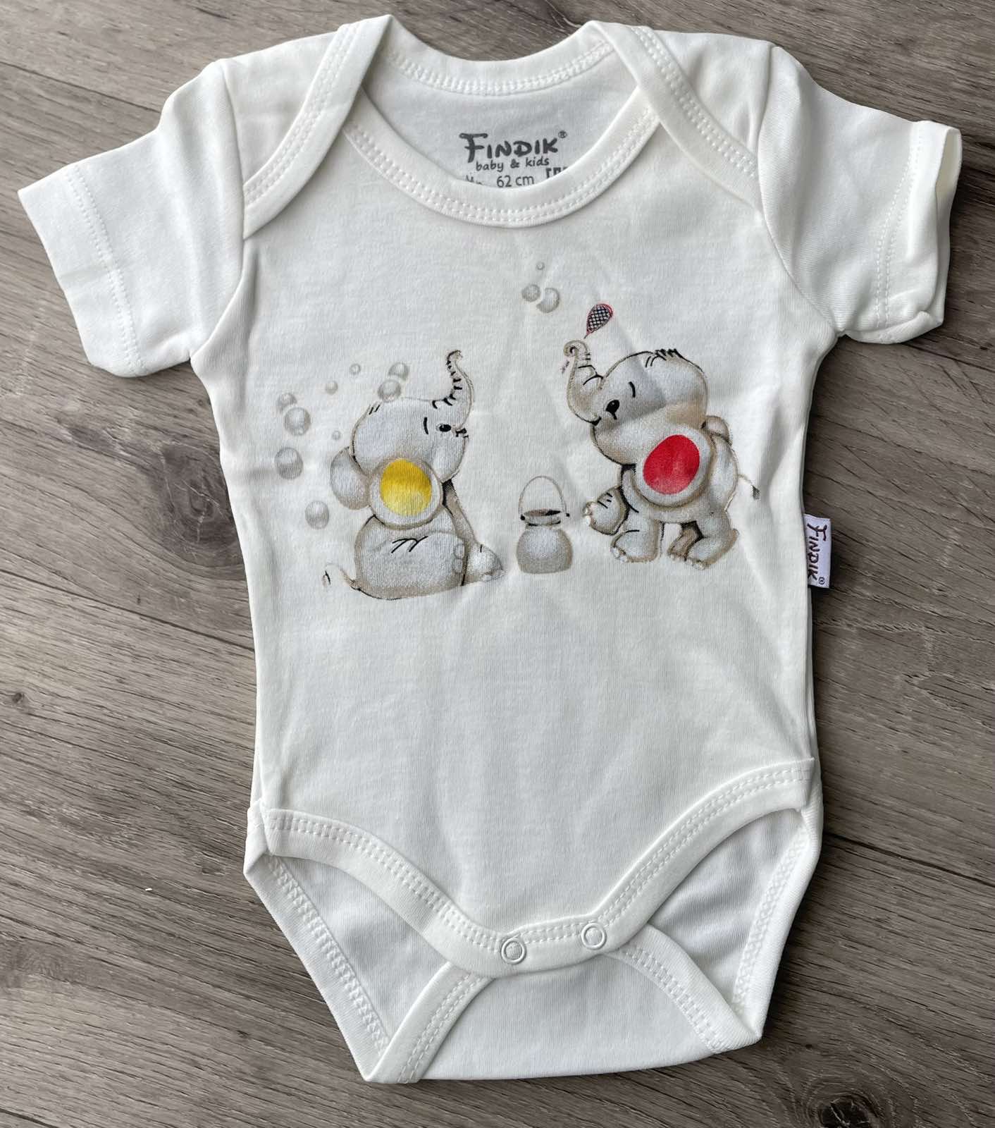 Боді Findik «Слоники» молочний, унісекс 3-6-9-12-18 місяців оптом уп. - 5 шт.