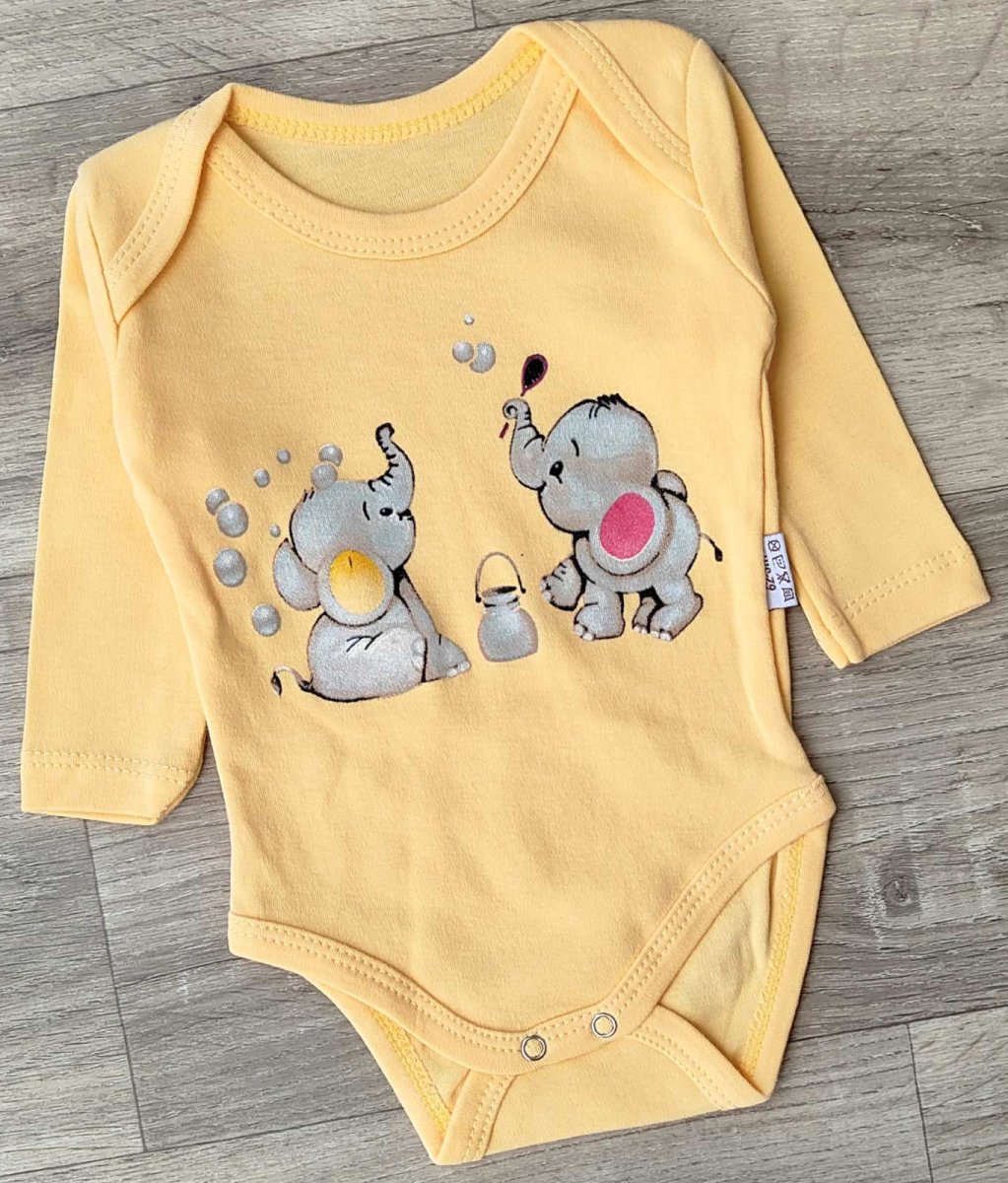 Боді Findik «Слоники» жовтий, унісекс 3-6-9-12-18 місяців оптом уп. - 5 шт.