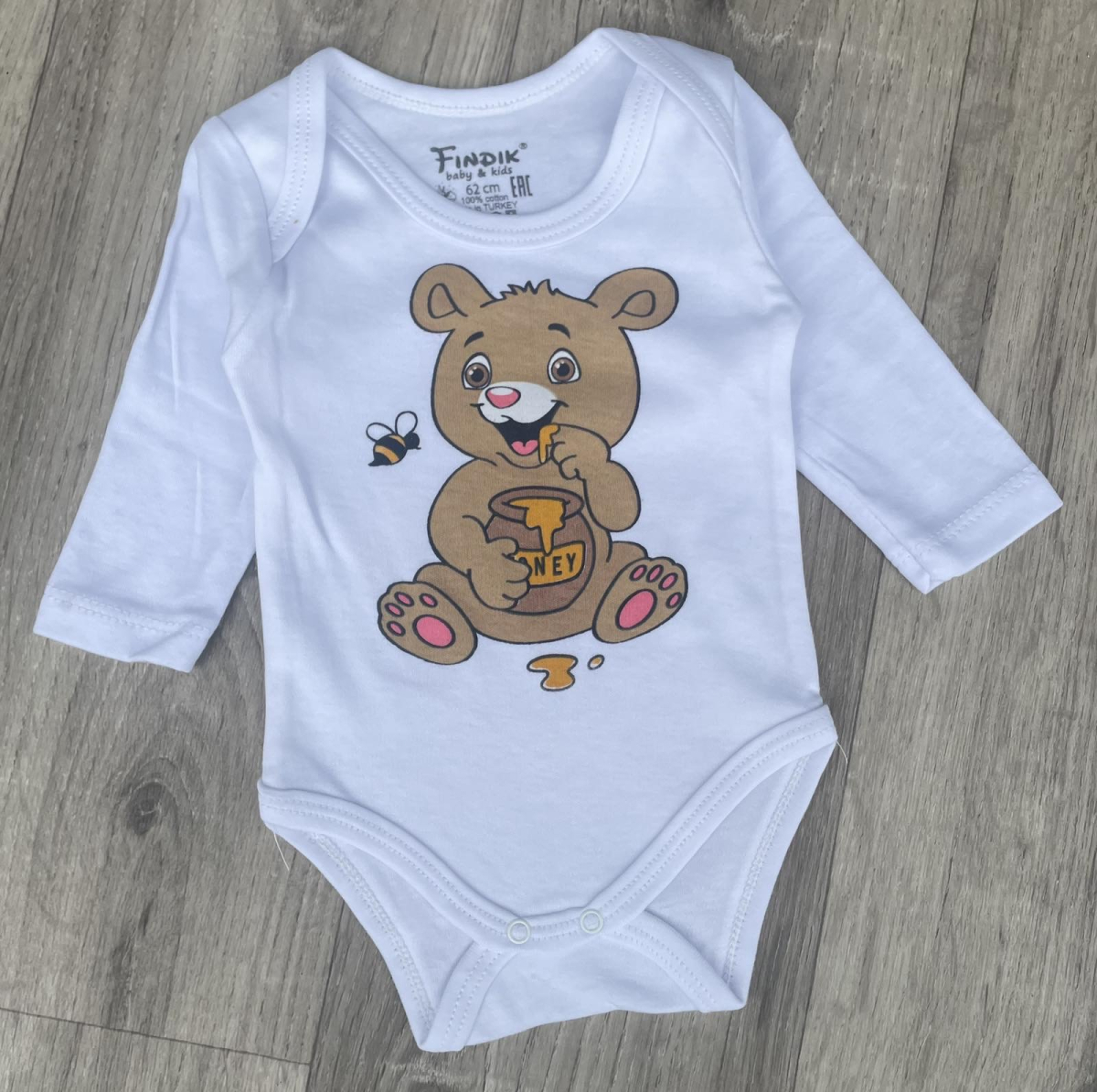 Боді Findik «Ведмедик» білий, унісекс 3-6-9-12-18 місяців оптом уп. - 5 шт.