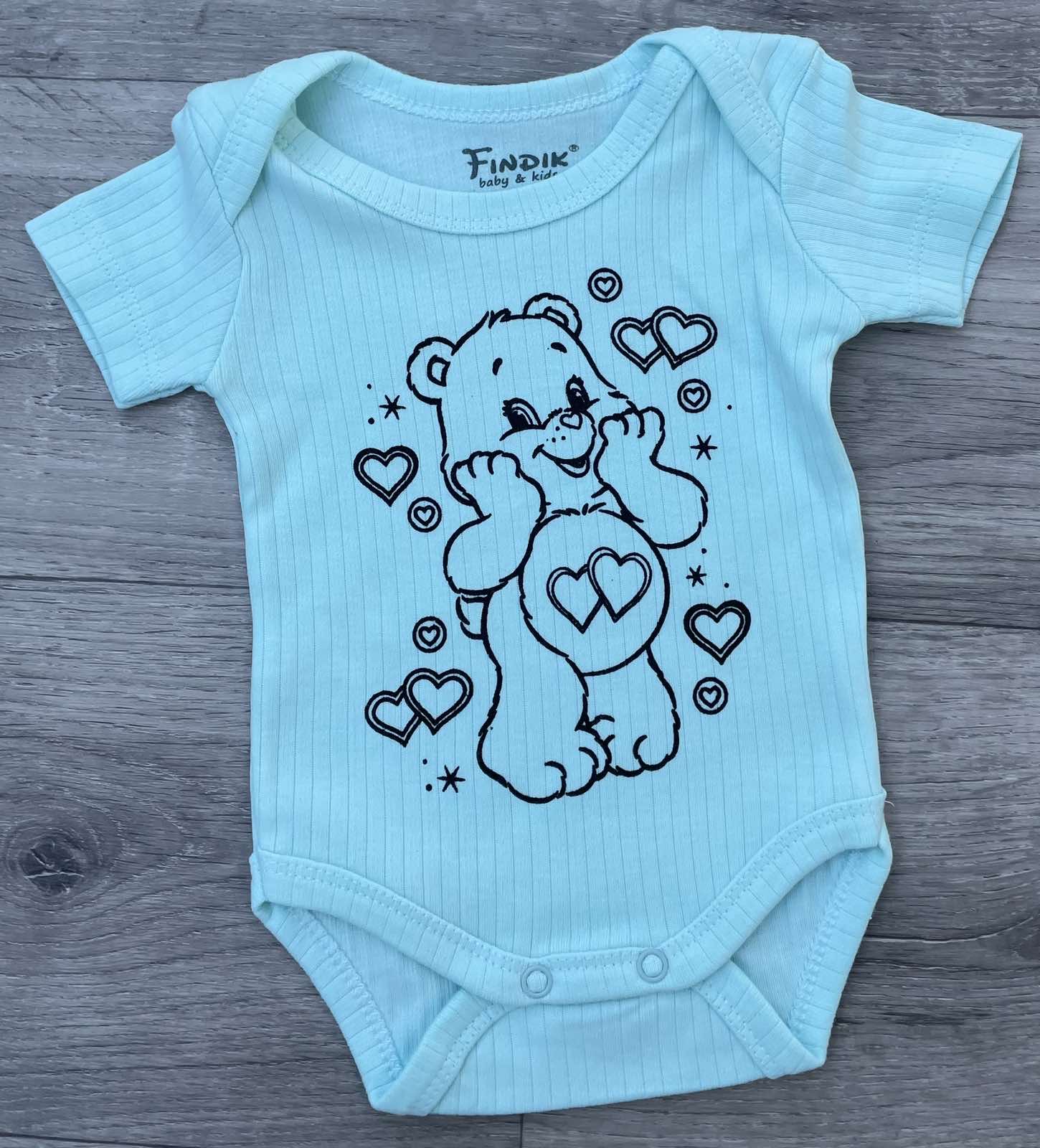 Боді Findik «Ведмедик» бірюзовий, унісекс 3-6-9-12-18 місяців оптом уп. - 5 шт.