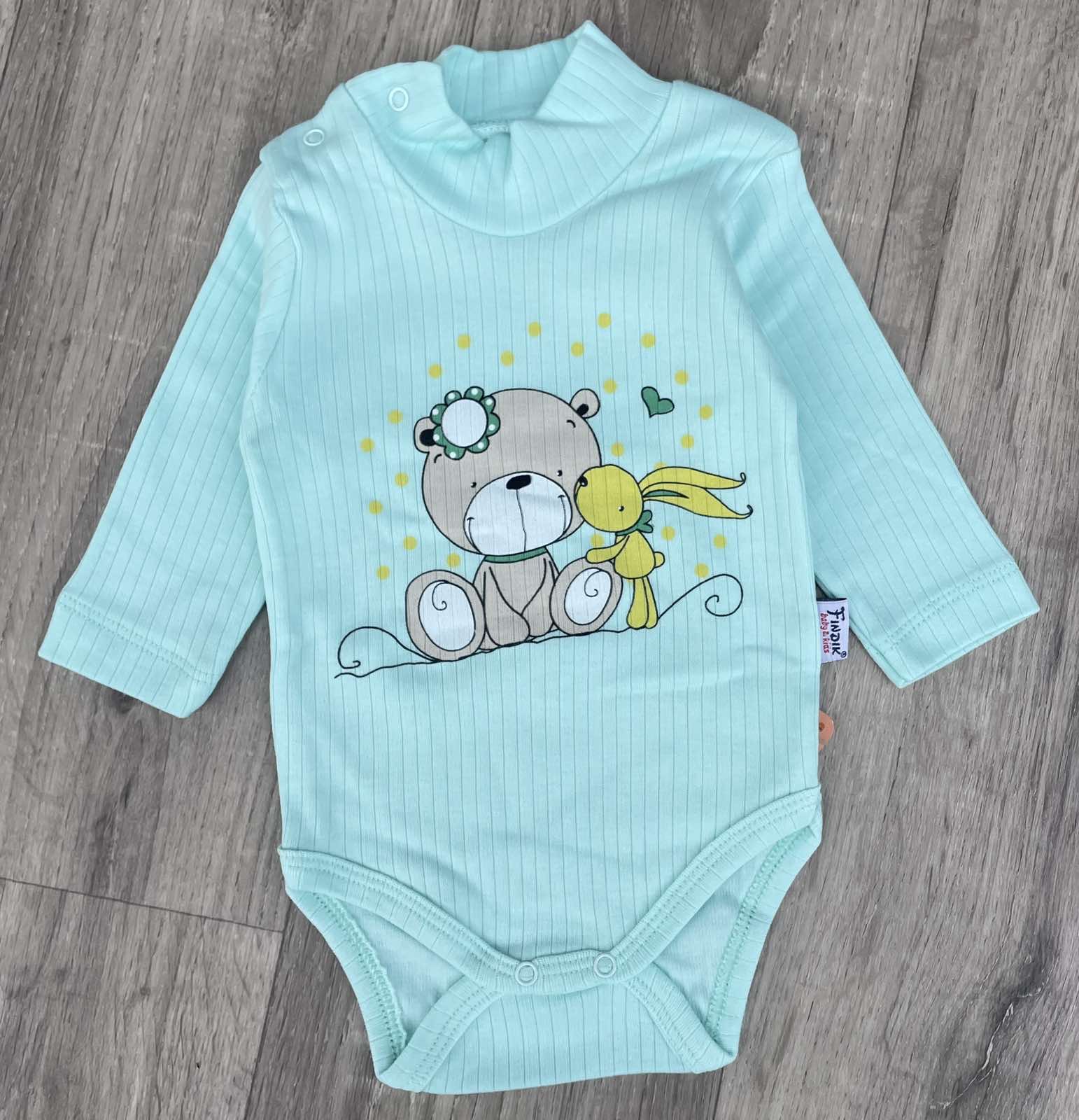 Боді Findik «Ведмедик із Зайчиком» бірюзовий, дівчинка 3-6-9-12-18 місяців оптом уп. - 5 шт.