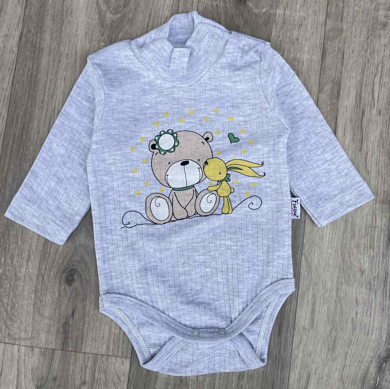 Боді Findik «Ведмедик із Зайчиком» сірий, дівчинка 3-6-9-12-18 місяців оптом уп. - 5 шт.
