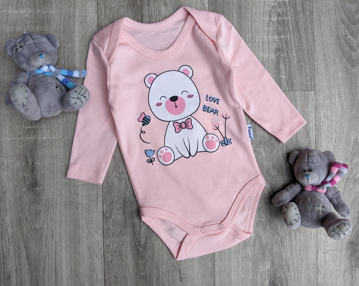 Боди Findik "Мишка", персиковый, девочка 3-6-9-12-18 месяцев оптом уп. - 5 шт.