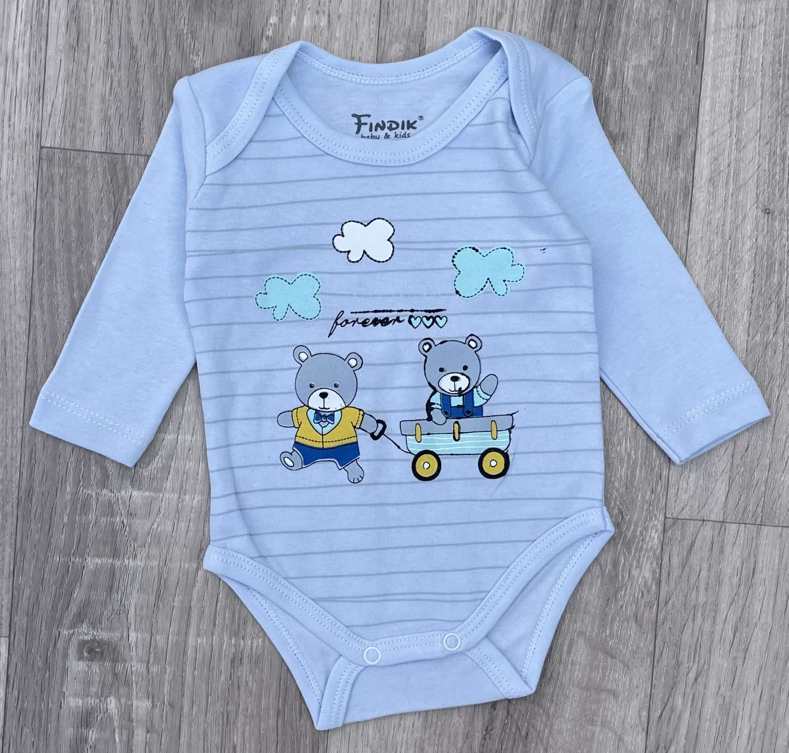 Боді Findik «Ведмедики» блакитний, хлопчик 3-6-9-12-18 місяців оптом уп. - 5 шт.