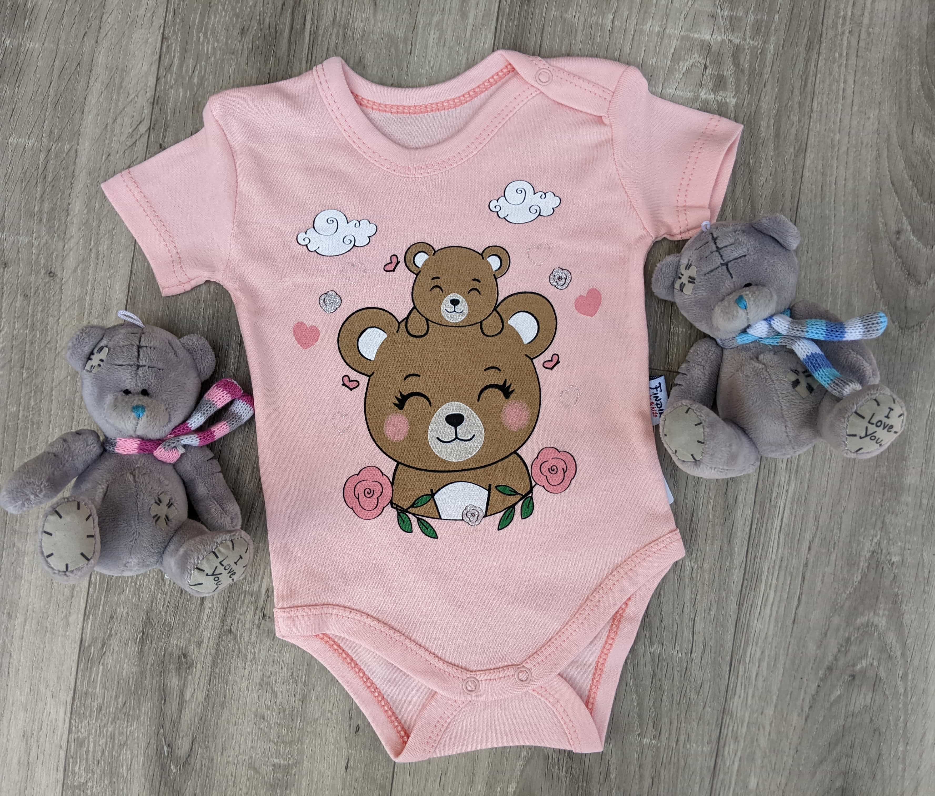 Боди Findik "Мишки", персиковый, девочка 3-6-9-12-18 месяцев оптом уп. - 5 шт.