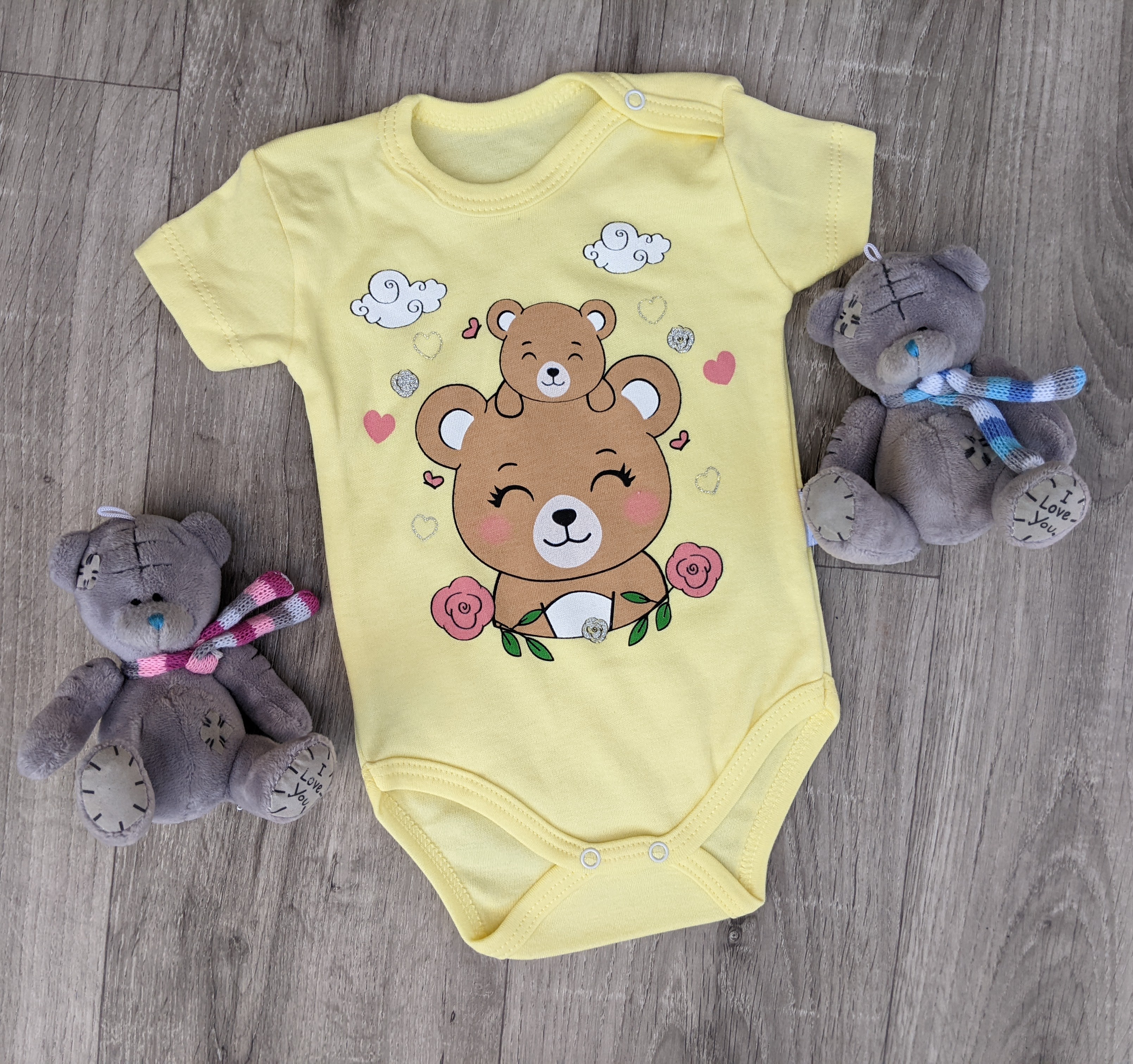 Боди Findik "Мишки", жёлтый, девочка 3-6-9-12-18 месяцев оптом уп. - 5 шт.
