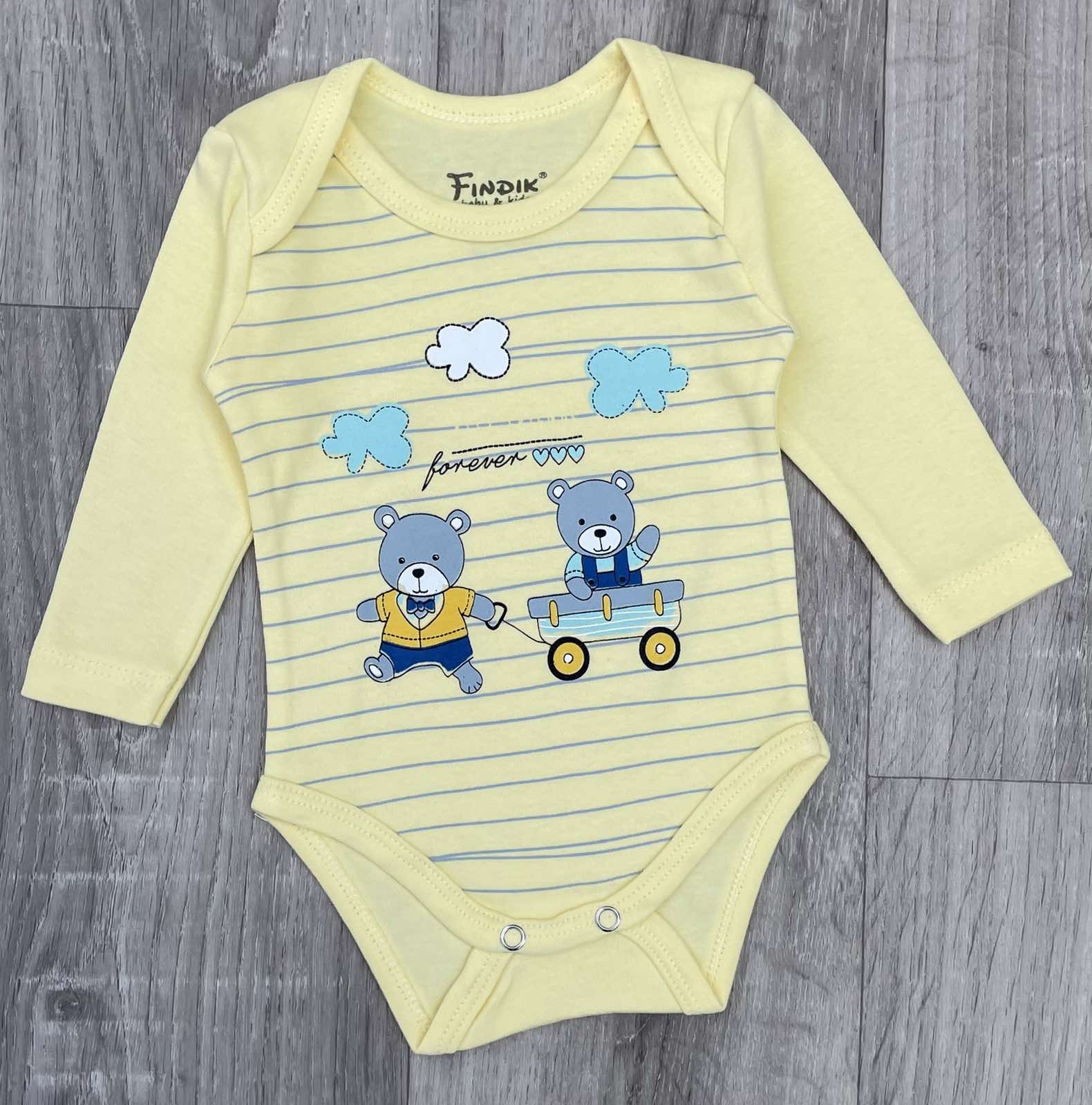 Боді Findik «Ведмедики» жовтий, хлопчик 3-6-9-12-18 місяців оптом уп. - 5 шт.