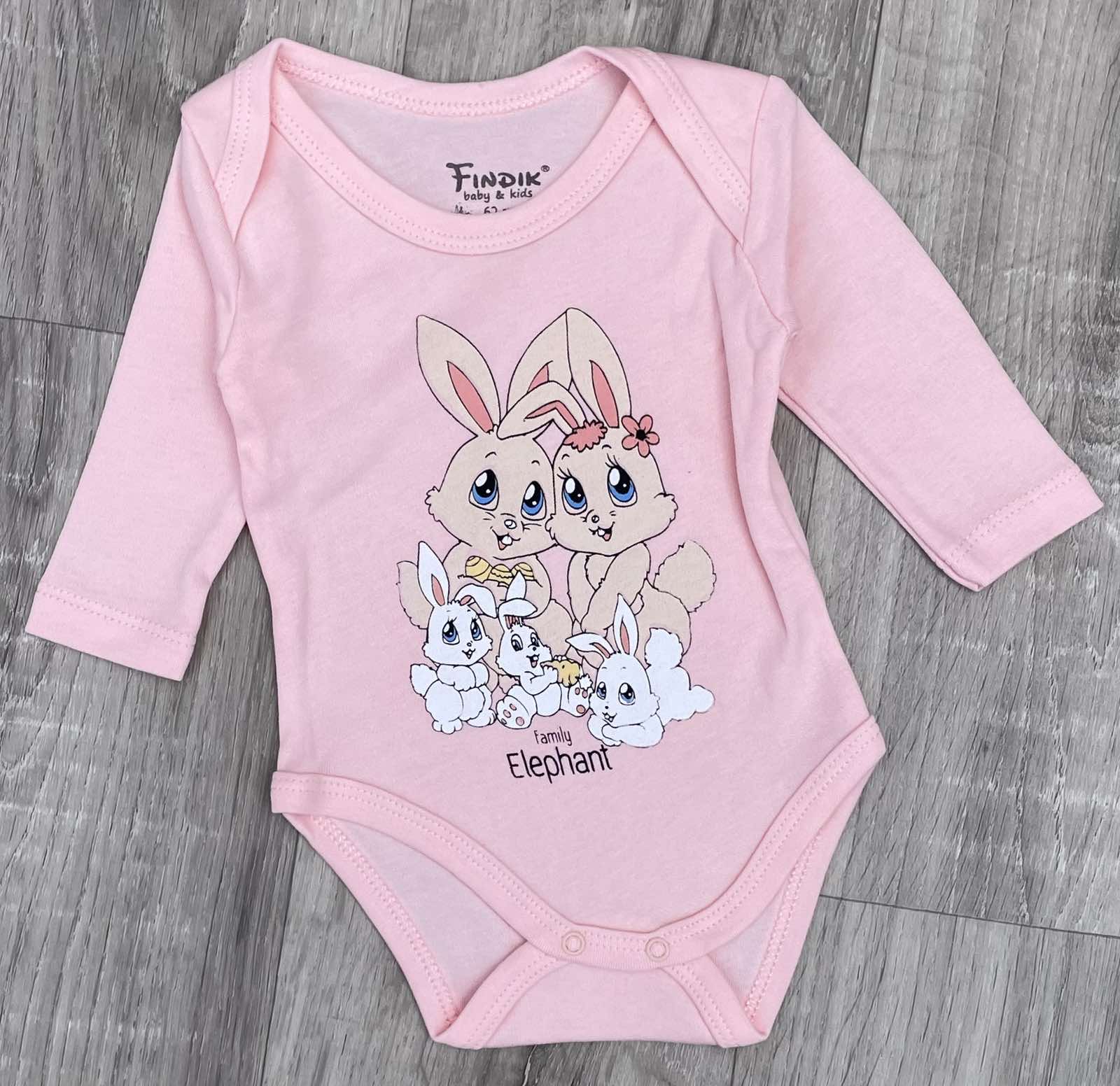 Боді Findik «Зайчики» персиковий, дівчинка 3-6-9-12-18 місяців оптом уп. - 5 шт.