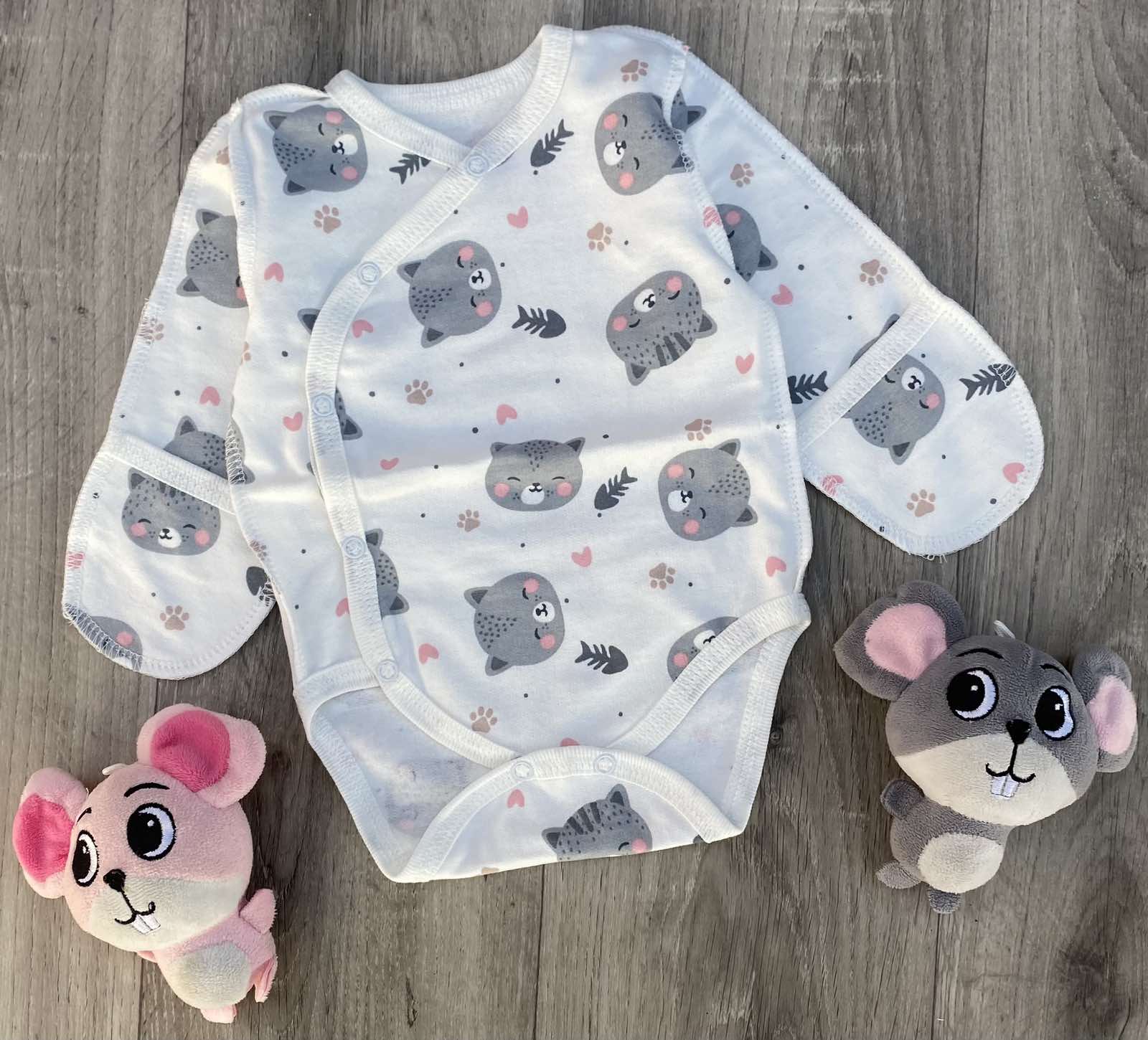 Боді "Кошеня" молочний, дівчинка 0-3 місяців оптом уп. - 4 шт.