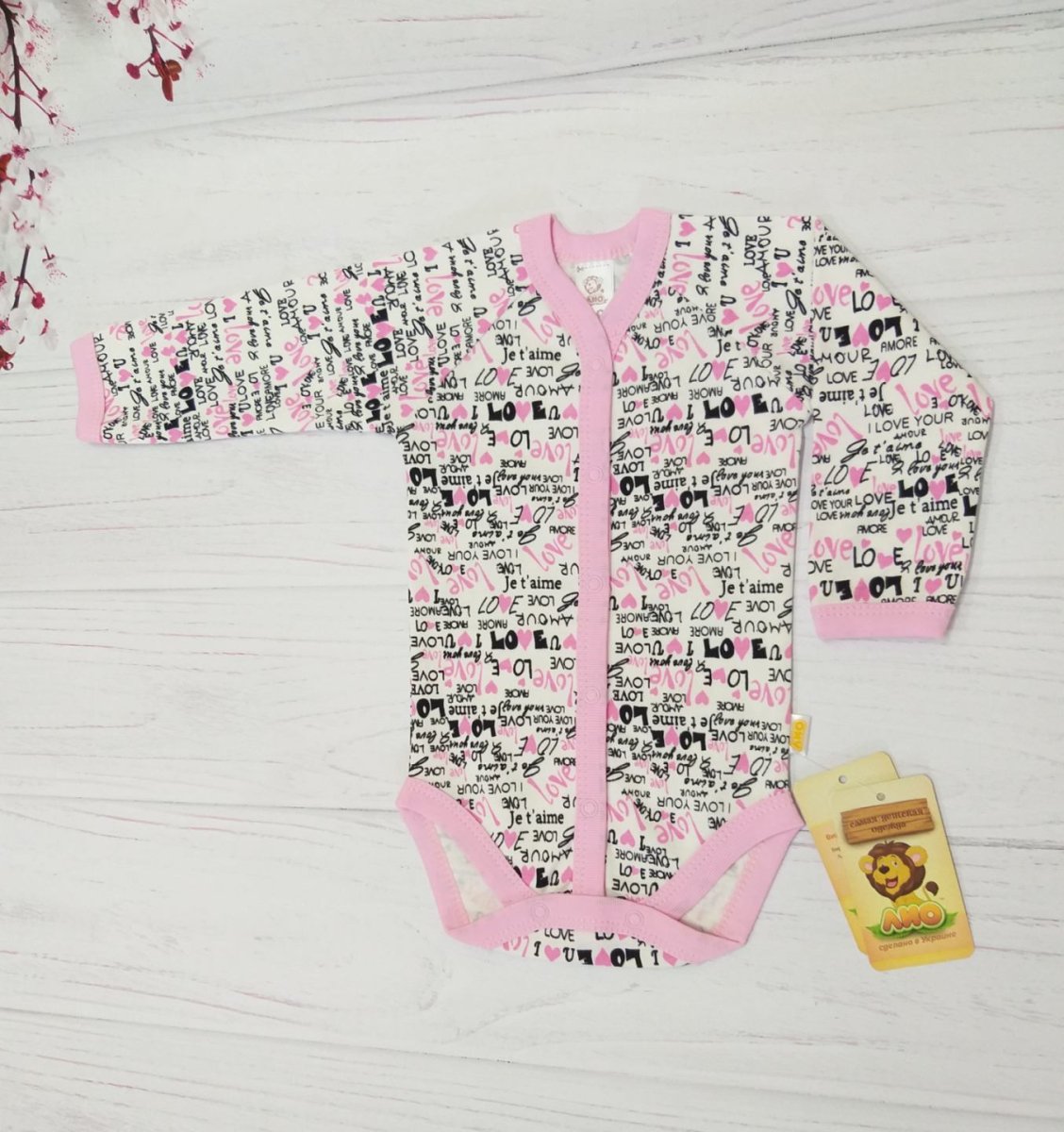 Боди "Love" , розовый, девочка 0-3-6 месяцев оптом уп. - 3 шт.