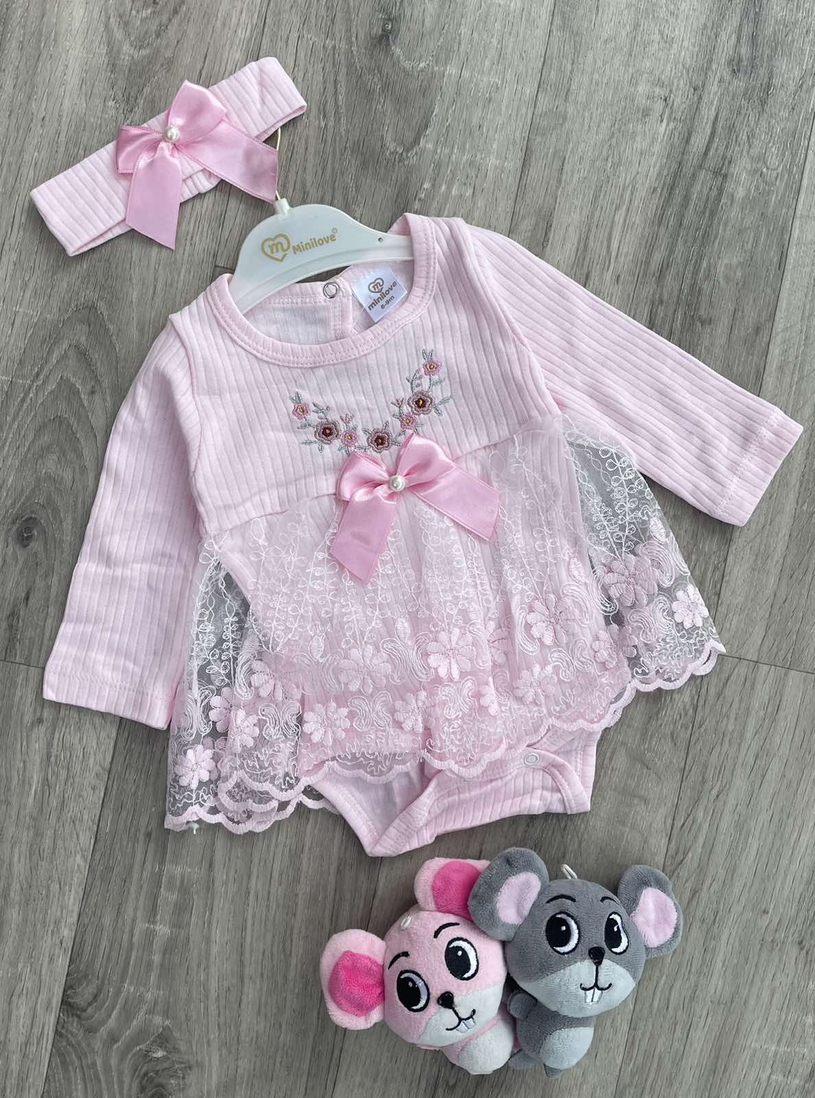 Боді Mini Love "Бант" рожевий, дівчинка 6-9-12 місяців оптом уп. - 3 шт.