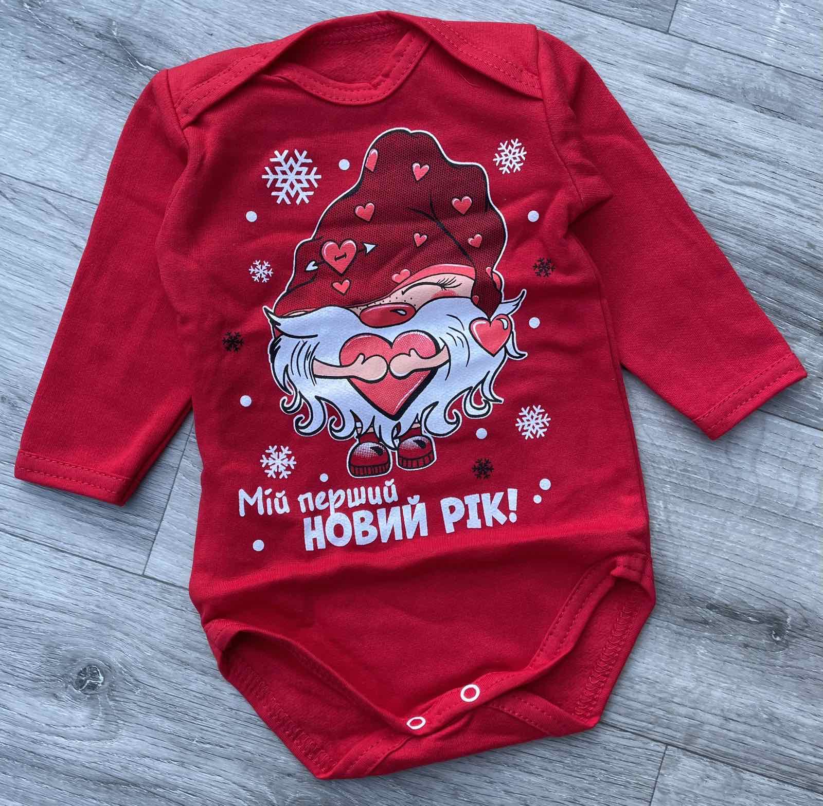 Боді «Мій перший Новий Рік! Гномік» червоний, унісекс 6-9-12-24 місяців оптом уп. - 4 шт.