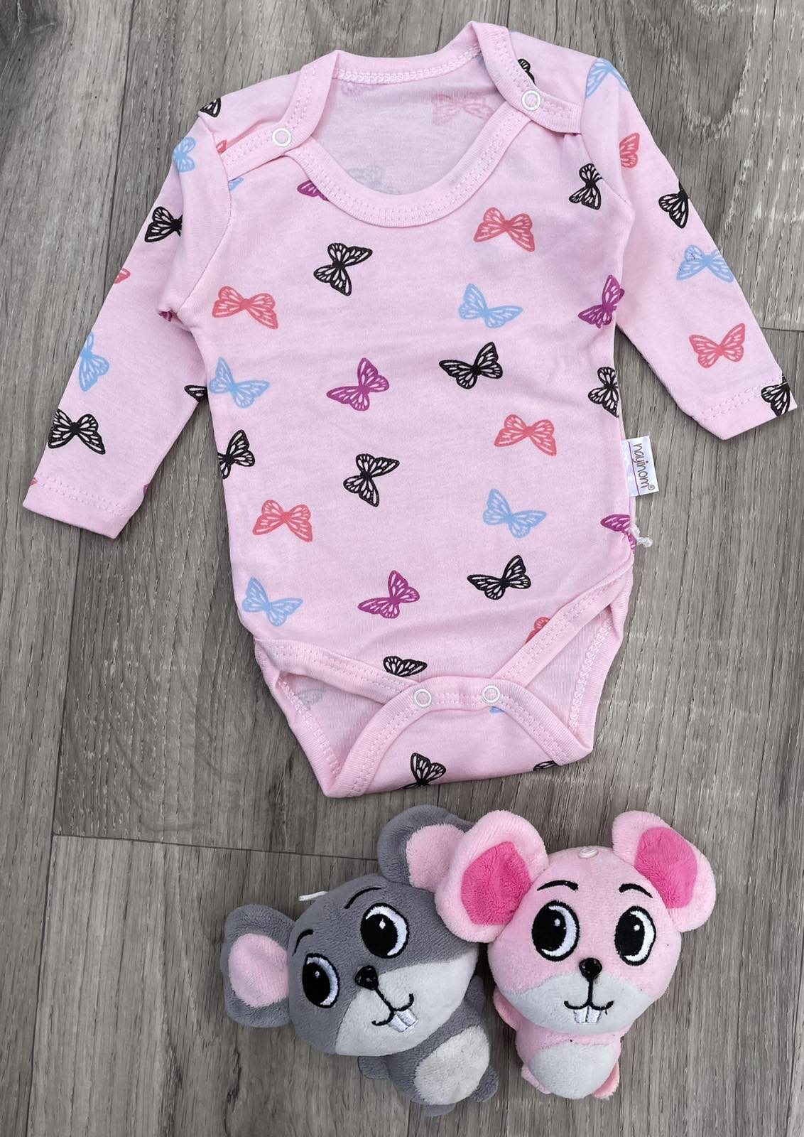 Боди Nayinom Baby "Бабочки" розовый, девочка 0-3-6-9 месяцев оптом уп. - 4 шт.