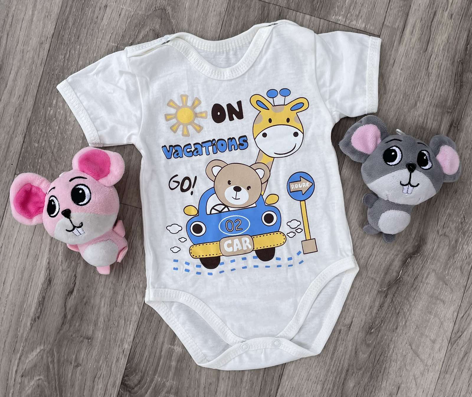 Боди "On vacations Go" молочный, унисекс 3-6-9 месяцев оптом уп. - 3 шт.