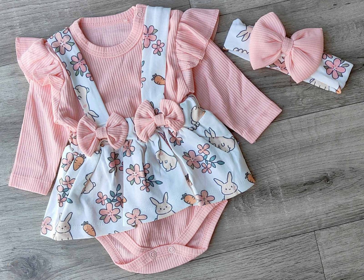 Боді-сукня "Зайченя" персиковий, дівчинка 3-6-9-12 місяців оптом уп. - 4 шт.