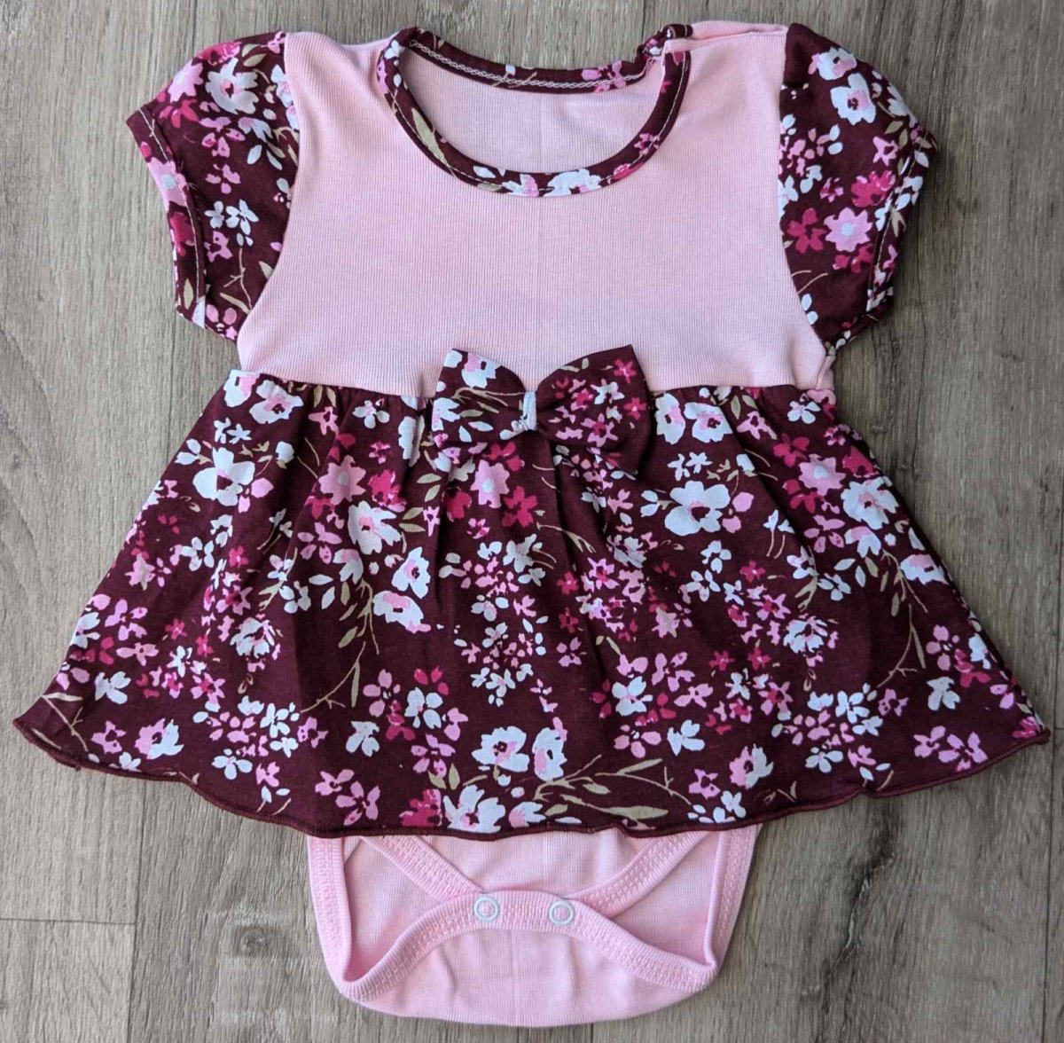 Боді-сукня "Квіти" рожевий, дівчинка 3-6-9 місяців оптом уп. - 3 шт.