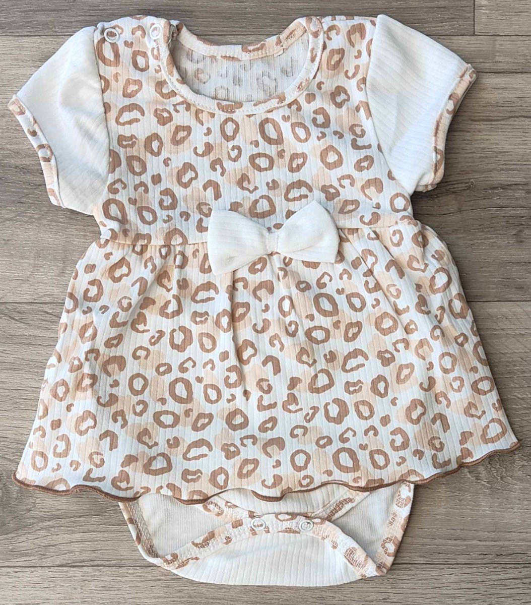 Боді-сукня "плями леопарда" молочний, дівчинка 3-6-9 місяців оптом уп. - 3 шт.