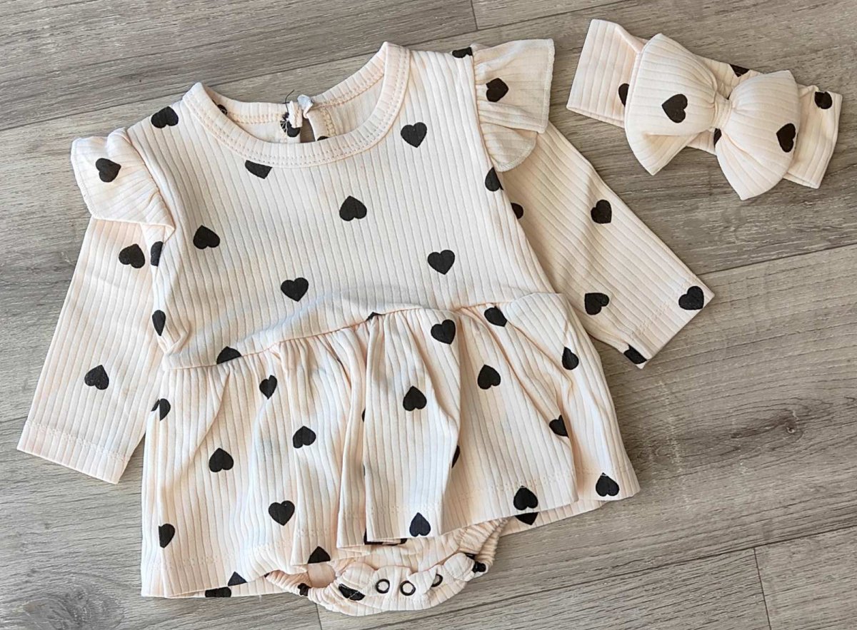 Боді-сукня "сердечки" бежевий, дівчинка 3-6-9-12 місяців оптом уп. - 4 шт.