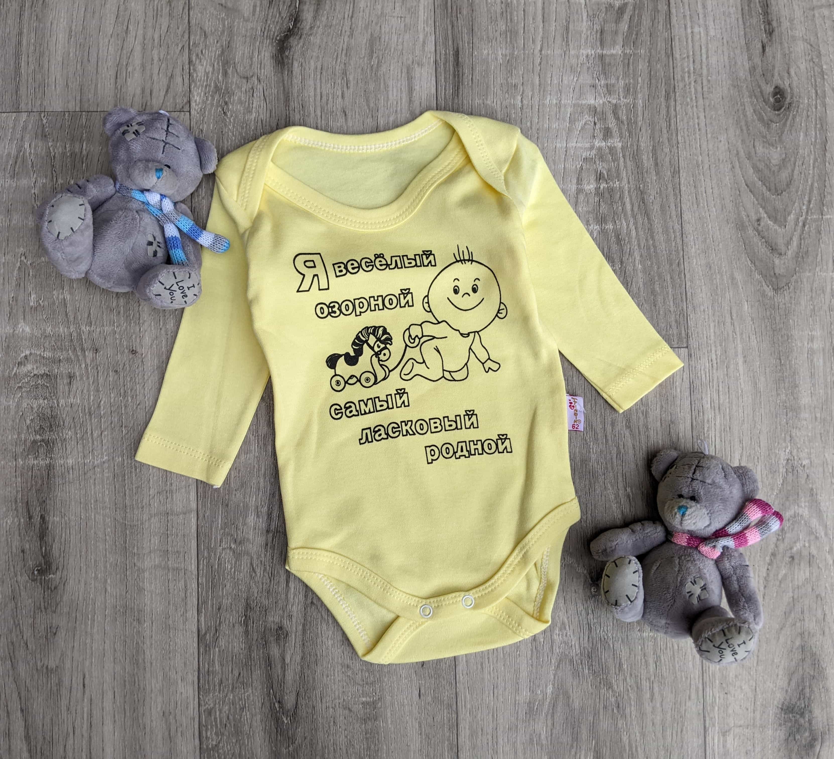 Боді "Я веселий пустотливий найласкавіший рідний", жовтий, 3-6-9-12-18 міс оптом уп. - 5 шт.