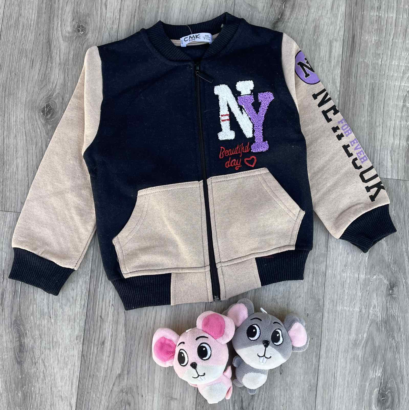 Бомбер CMK "NY" синий, девочка 3-4-5-6-7 лет оптом уп. - 5 шт.