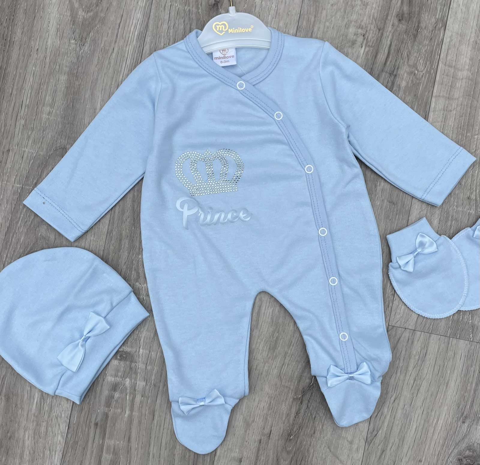 Чоловічок Minilove «Prince» блакитний, хлопчик 0-3-6 місяців оптом уп. - 3 шт.