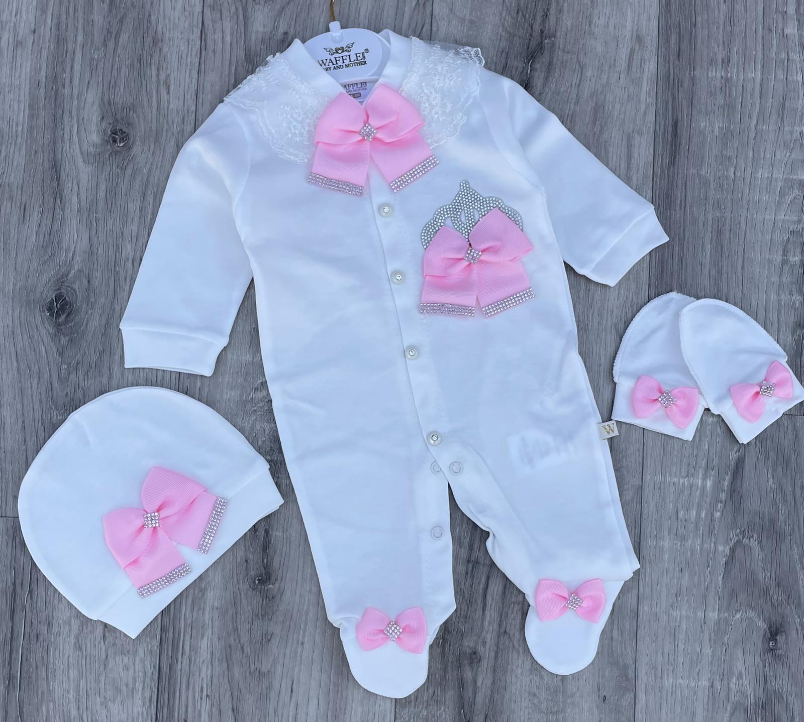 Чоловічок Amore "Корона" білий з рожевим, дівчинка 0-3-6 місяців оптом уп. - 3 шт.