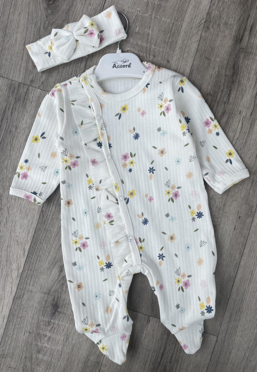 Чоловічок Annora «Квіточки» молочний, дівчинка 0-3-6 місяців оптом уп. - 3 шт.