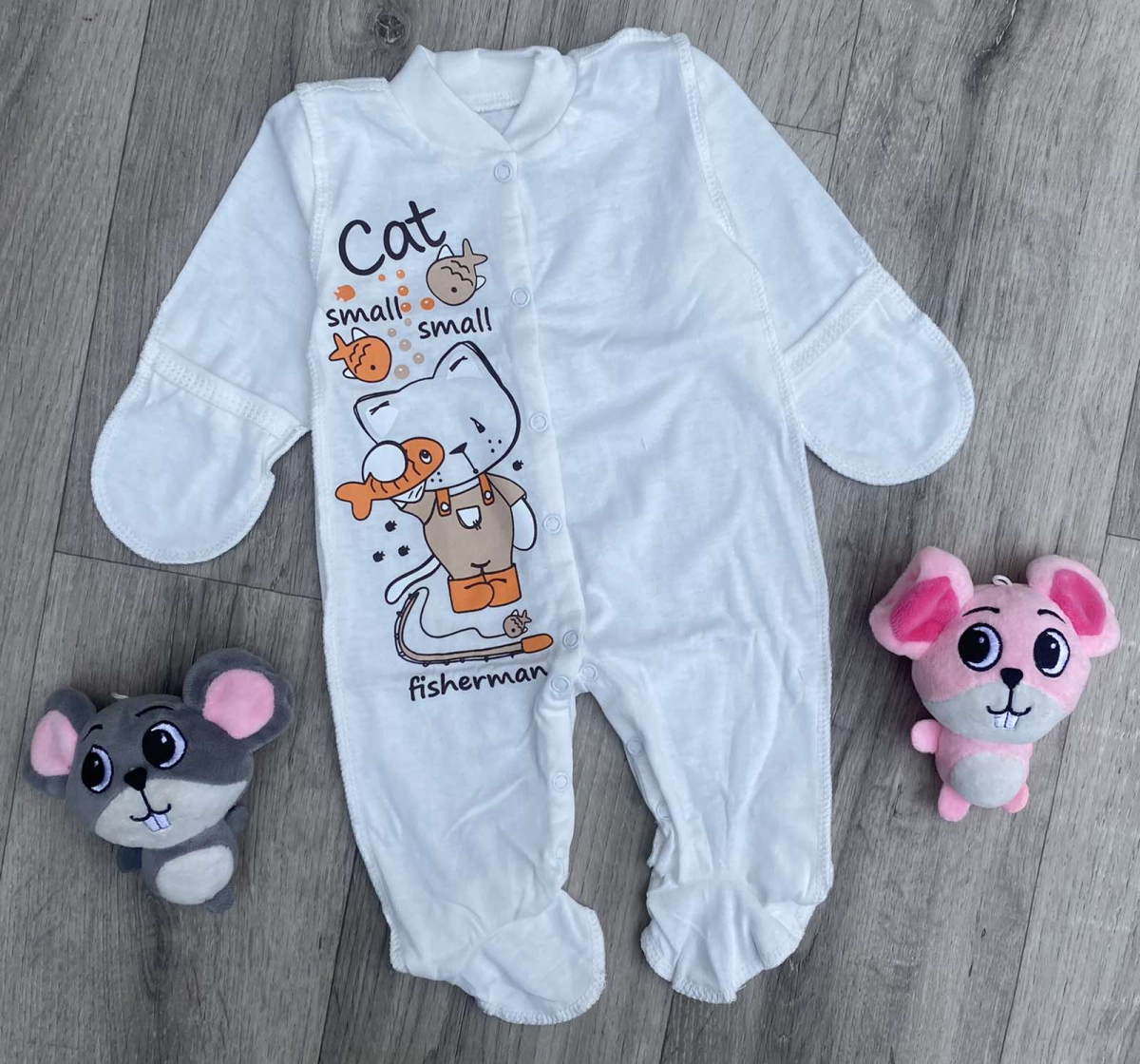 Чоловічок «Cat» молочний, хлопчик 0-3-6-9 місяців оптом уп. - 4 шт.