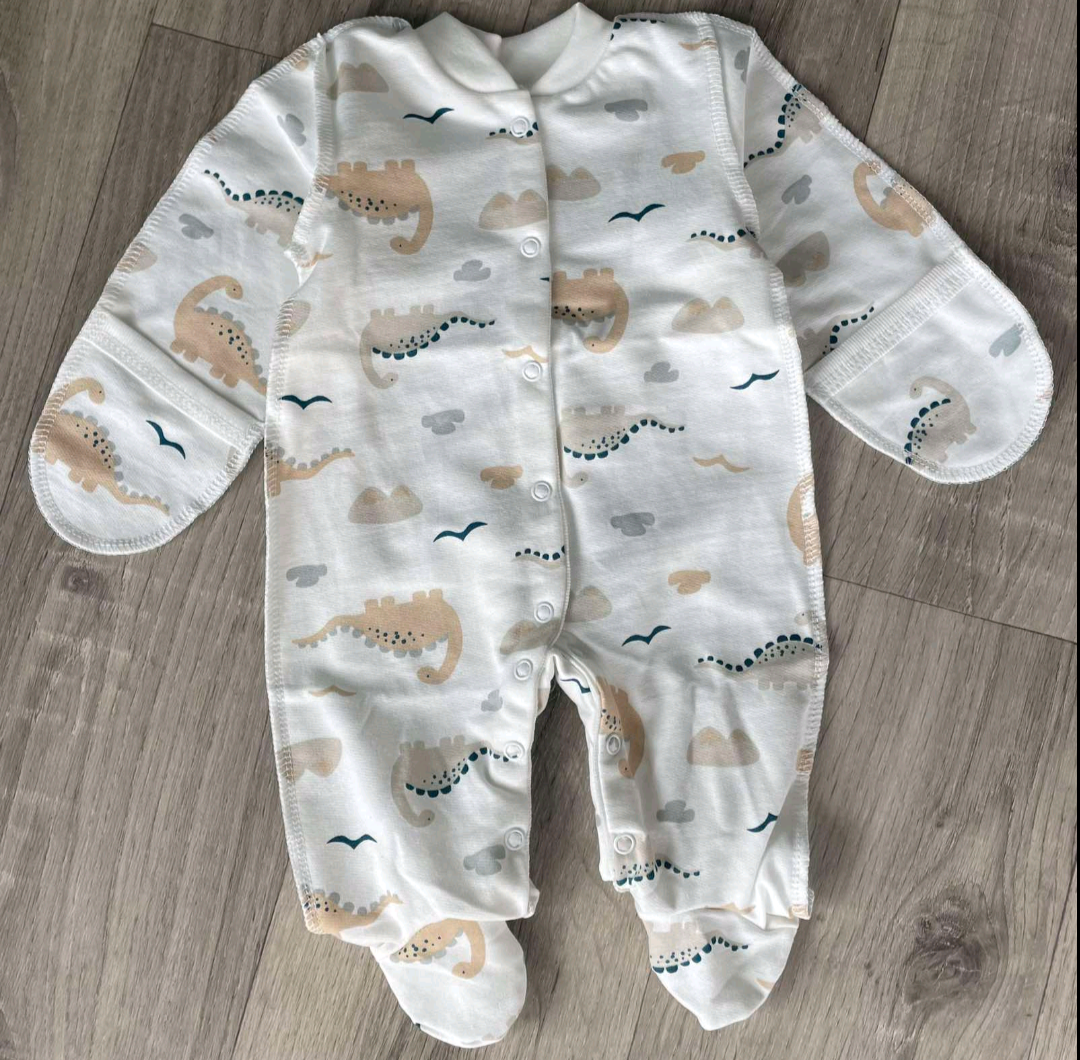 Чоловічок "Дінозаври" молочний, унісекс 0-3-6-9 місяців оптом уп. - 4 шт.