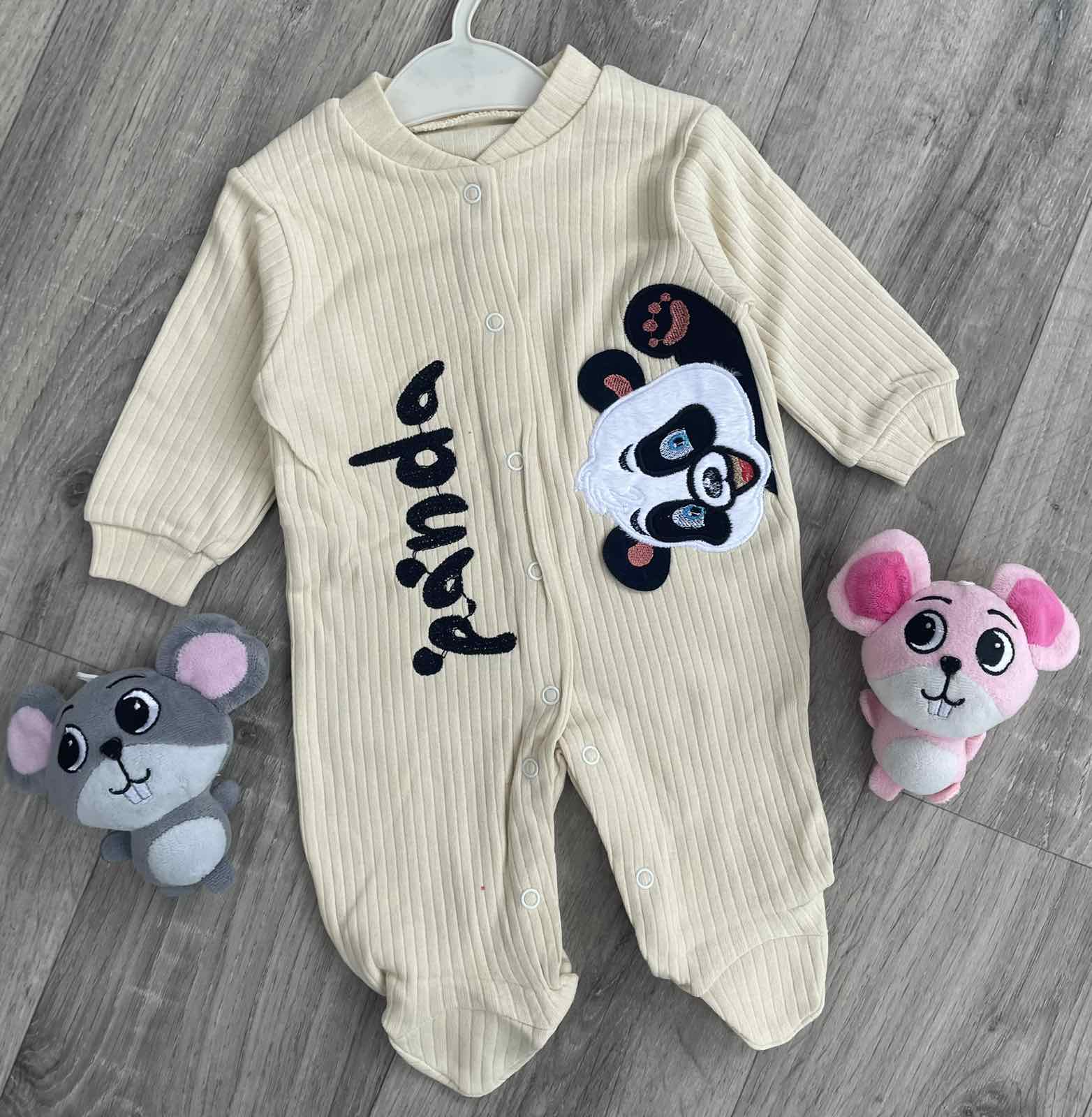 Чоловічок Kids Wear "Panda" бежевий, хлопчик 0-3-6 місяців оптом уп. - 3 шт.