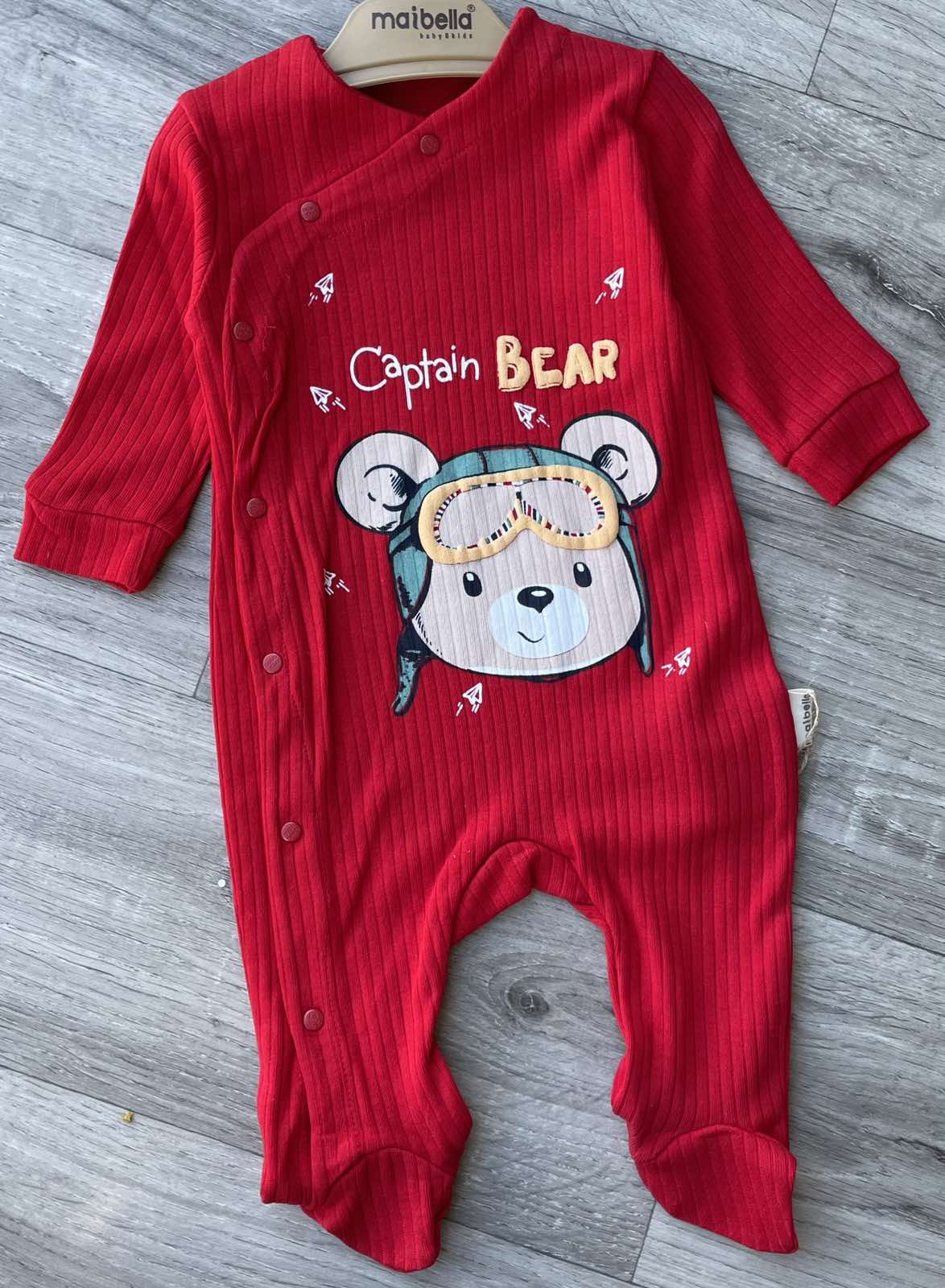 Чоловічок Maibella "Captain Bear" червоний, хлопчик 0-3-6-9 місяців оптом уп. - 4 шт.