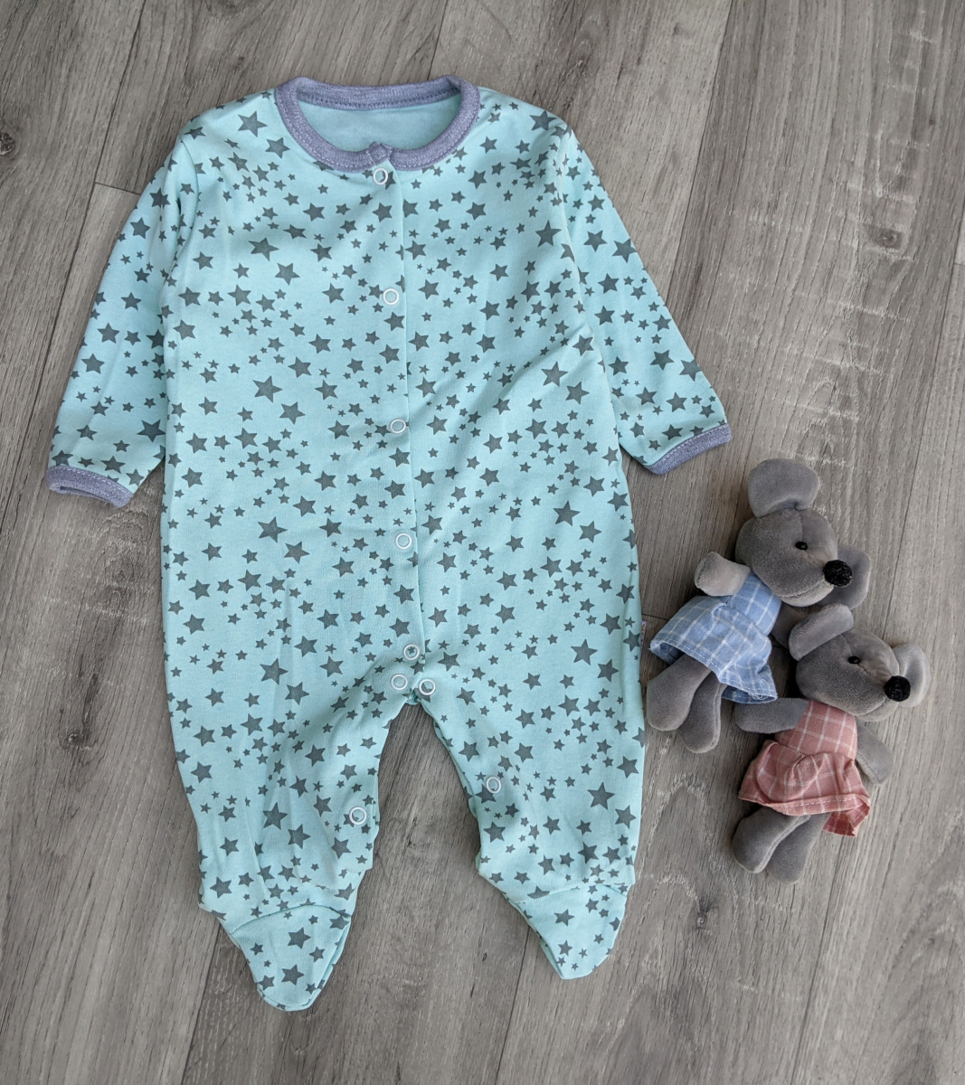 Чоловічок Midirik, "Зірочки", бірюзовий, унісекс 3-6-9 місяців оптом уп. - 3 шт.