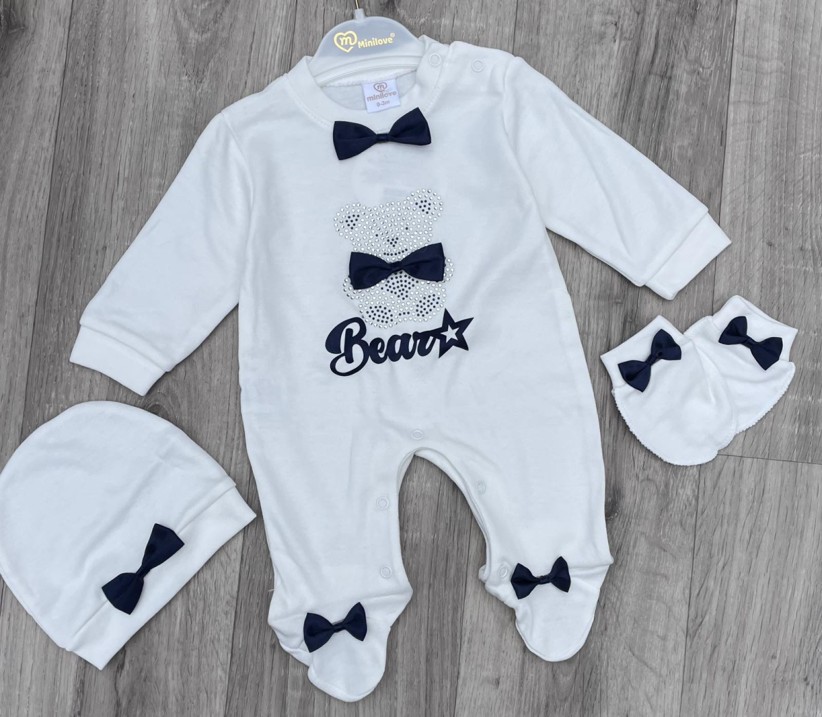Чоловічок Minilove «Bear» білий, хлопчик 0-3-6 місяців оптом уп. - 3 шт.