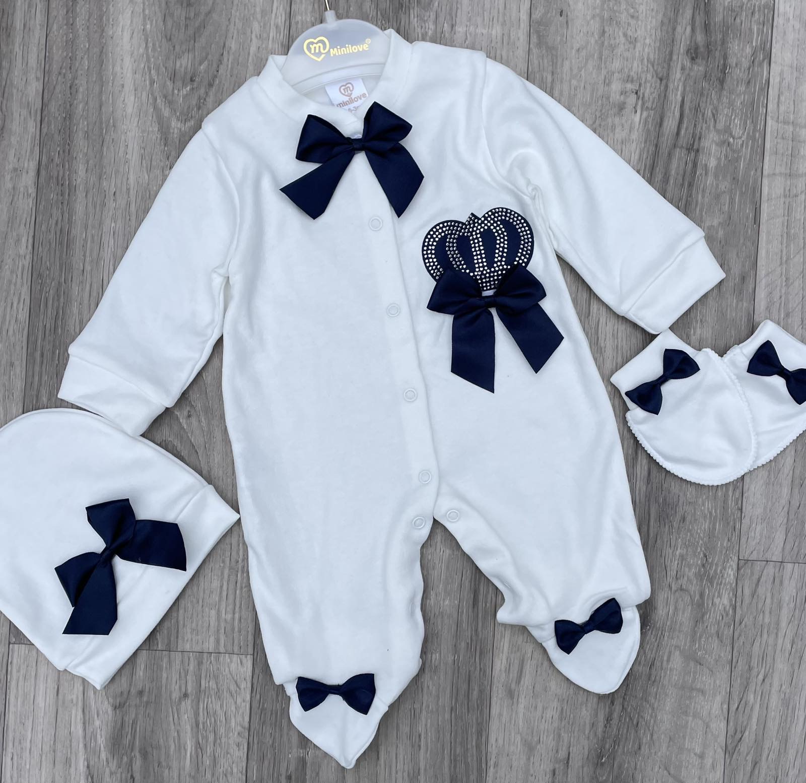 Чоловічок Minilove «Корона» темно-синій, хлопчик 0-3-6 місяців оптом уп. - 3 шт.