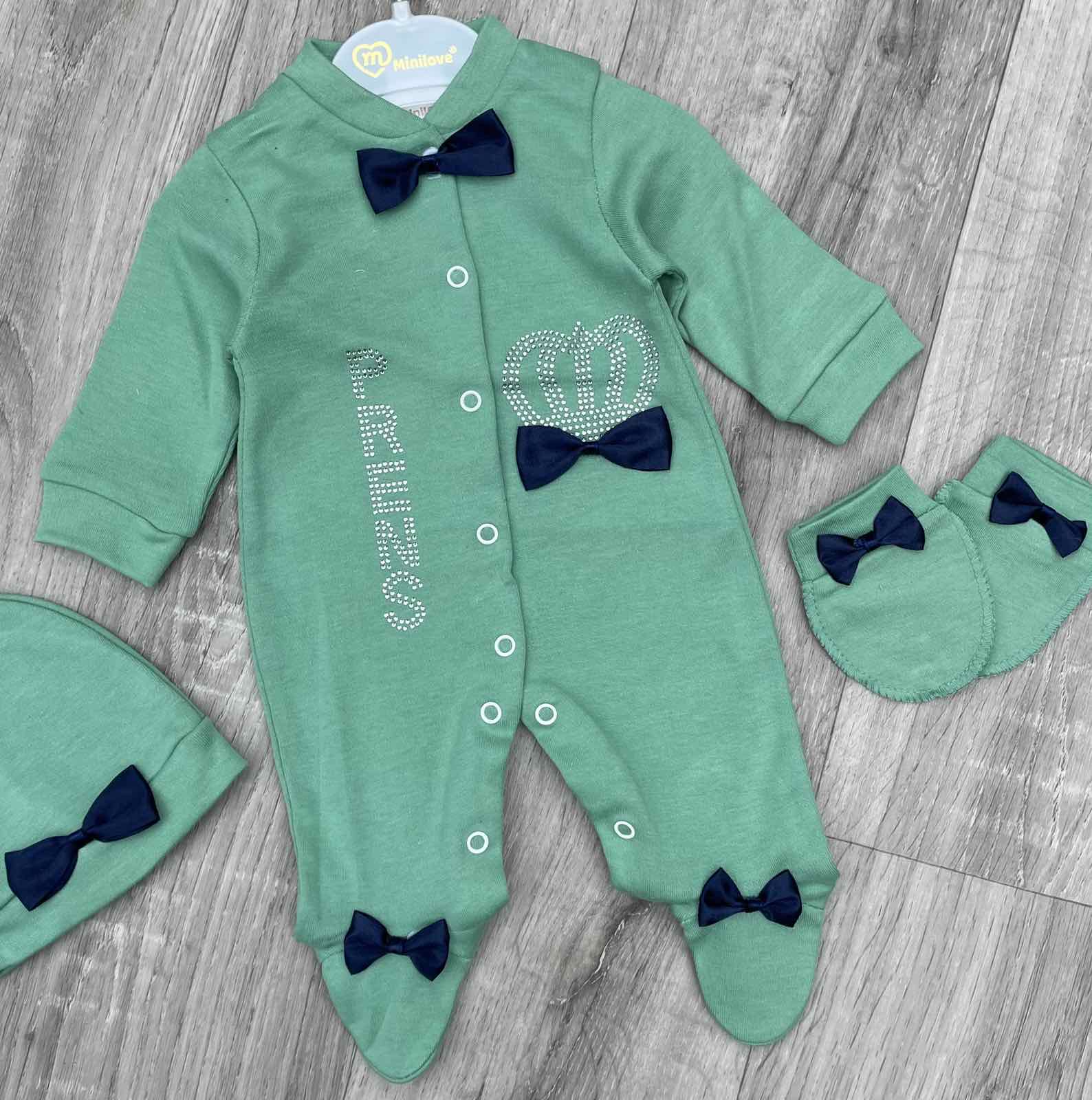 Чоловічок Minilove «Prens» зелений, хлопчик 0-3-6 місяців оптом уп. - 3 шт.