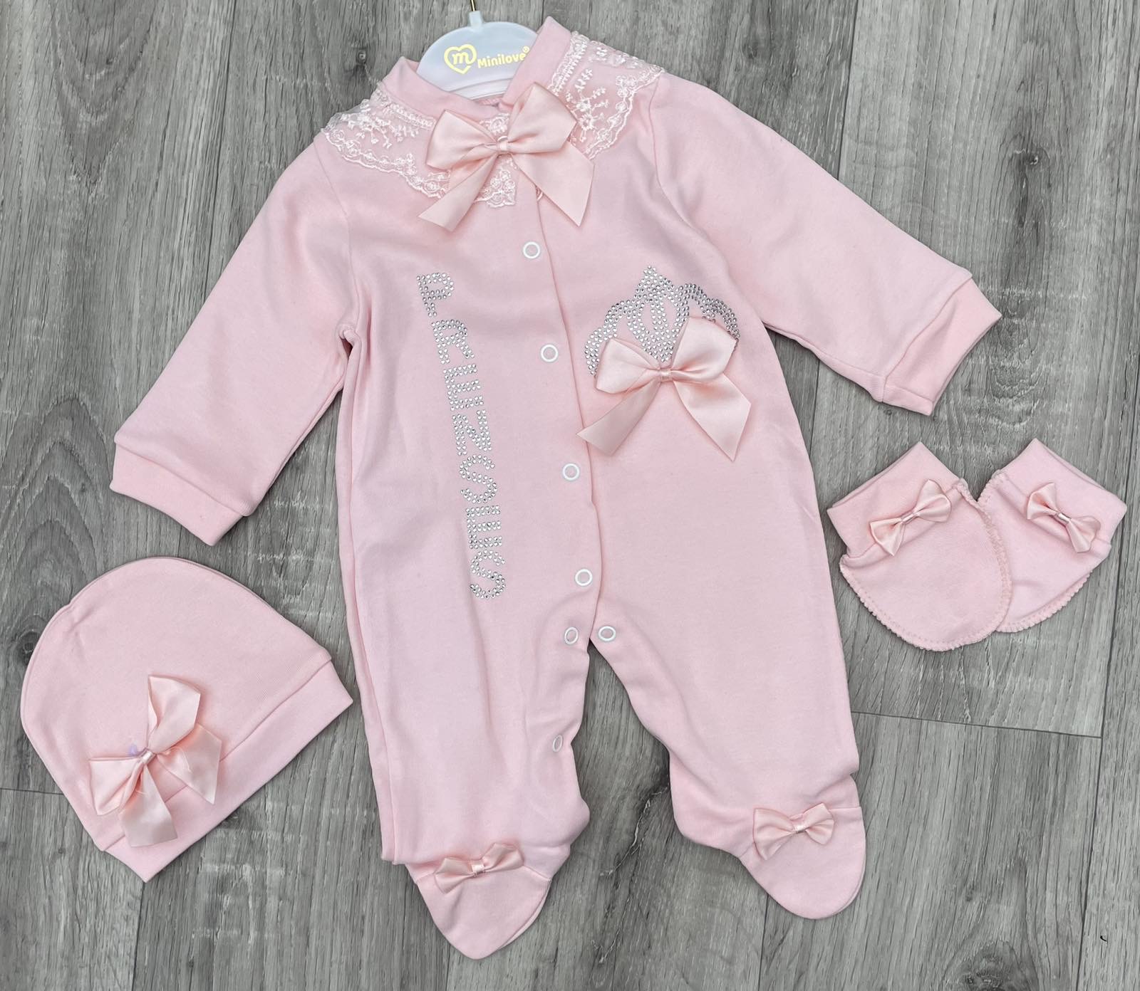 Чоловічок Minilove «Prenses» персиковий, дівчинка 0-3-6 місяців оптом уп. - 3 шт.
