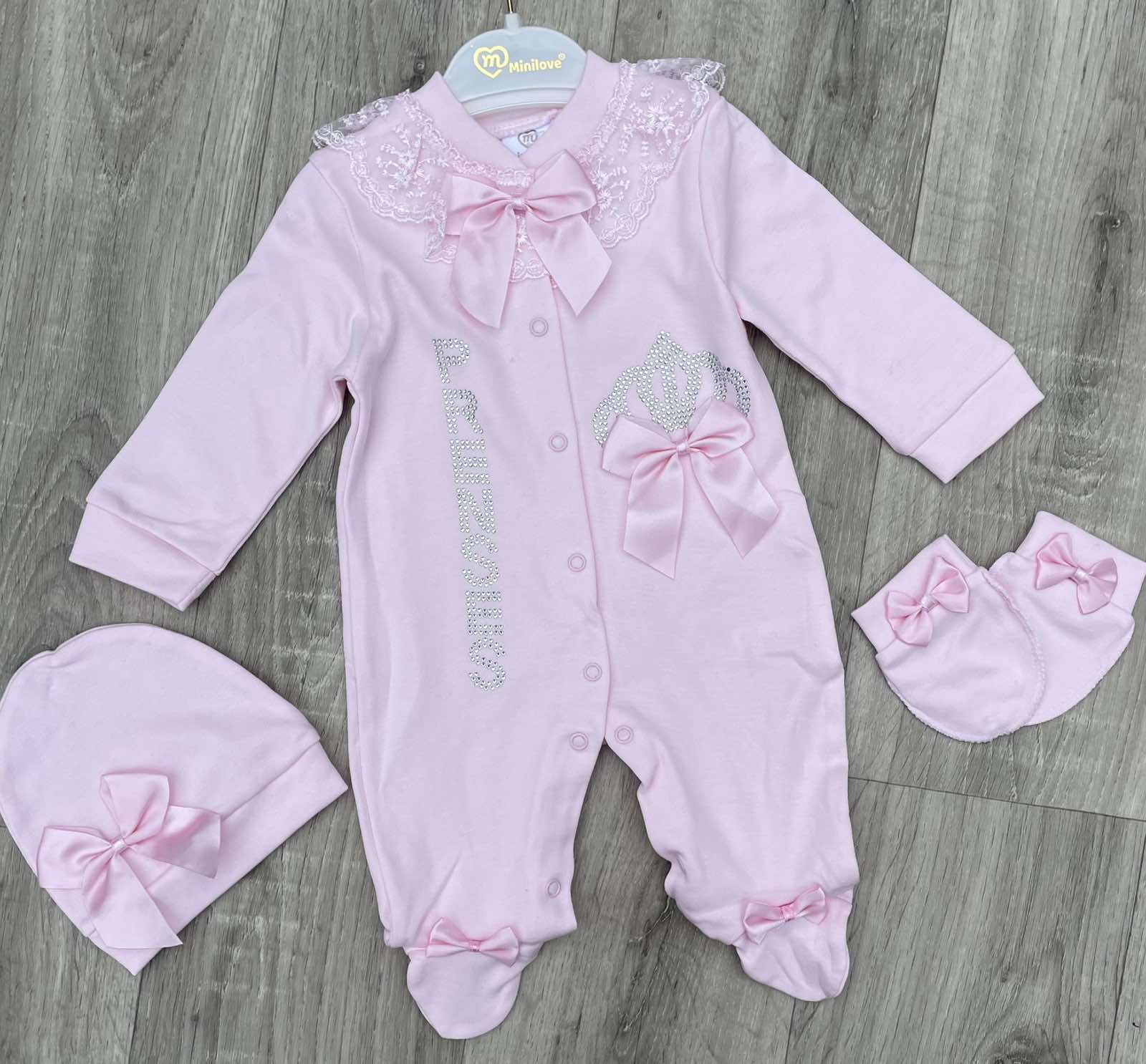 Человечек Minilove «Prenses» розовый, девочка 0-3-6 месяцев оптом уп. - 3 шт.