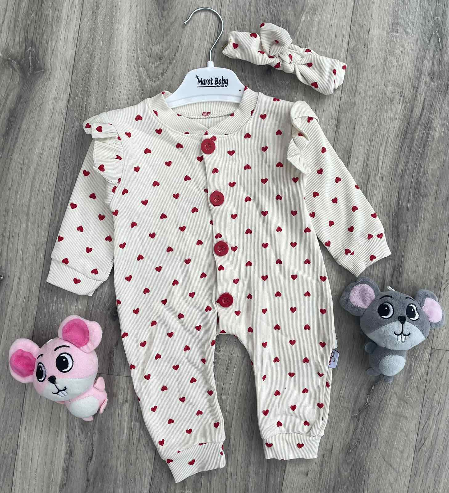 Чоловічок Murat Baby "Серця" бежевий, дівчинка 3-6-9-12 місяців оптом уп. - 4 шт.