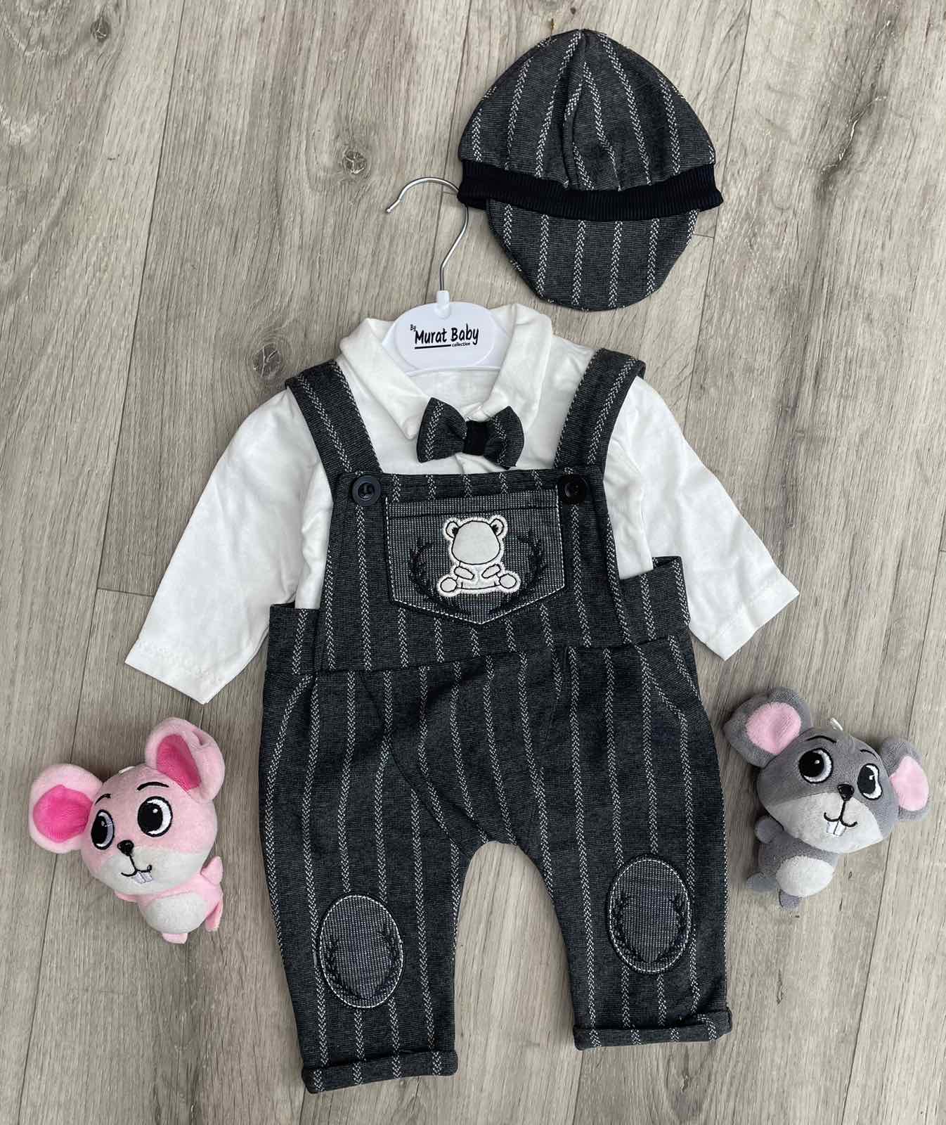 Чоловічок Murat Baby "У смужку" сірий, хлопчик 3-6-9-12 місяців оптом уп. - 4 шт.