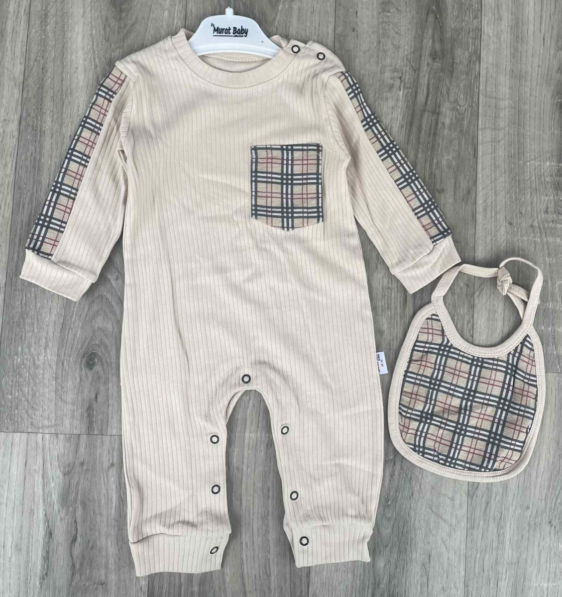 Чоловічок Murat «Клітинка» бежевий, хлопчик 3-6-9-12 місяців оптом уп. - 4 шт.