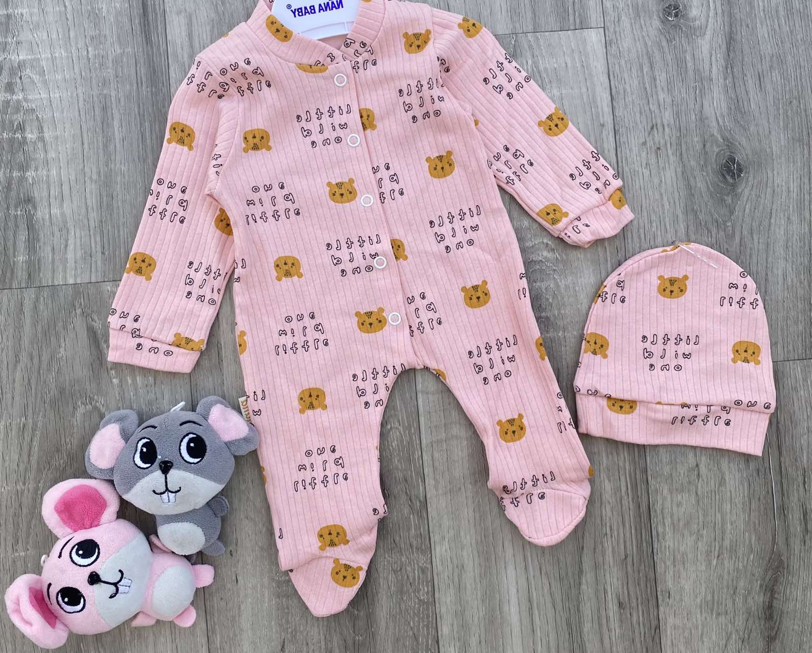 Чоловічок Nana Baby "Bear" персиковий, дівчинка 0-3-6 місяців оптом уп. - 3 шт.