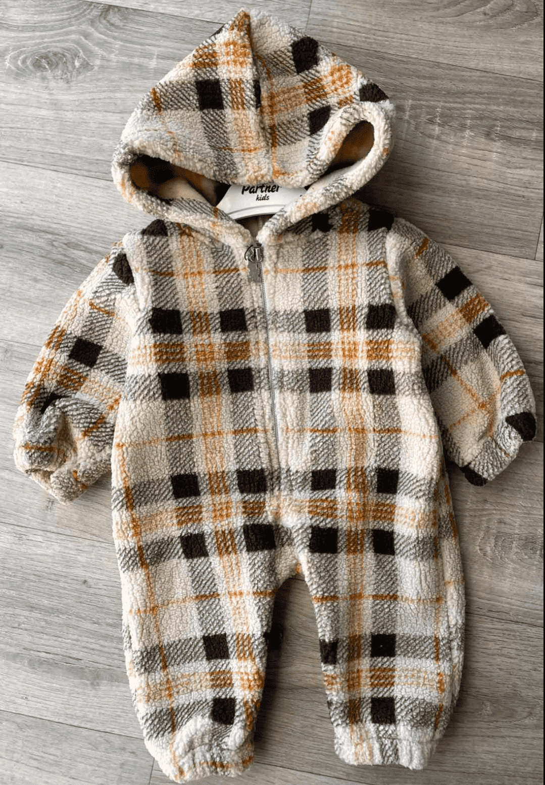 Чоловічок Partner "Клітинка" бежевый, унисекс 3-6-9-12 месяцев, фото