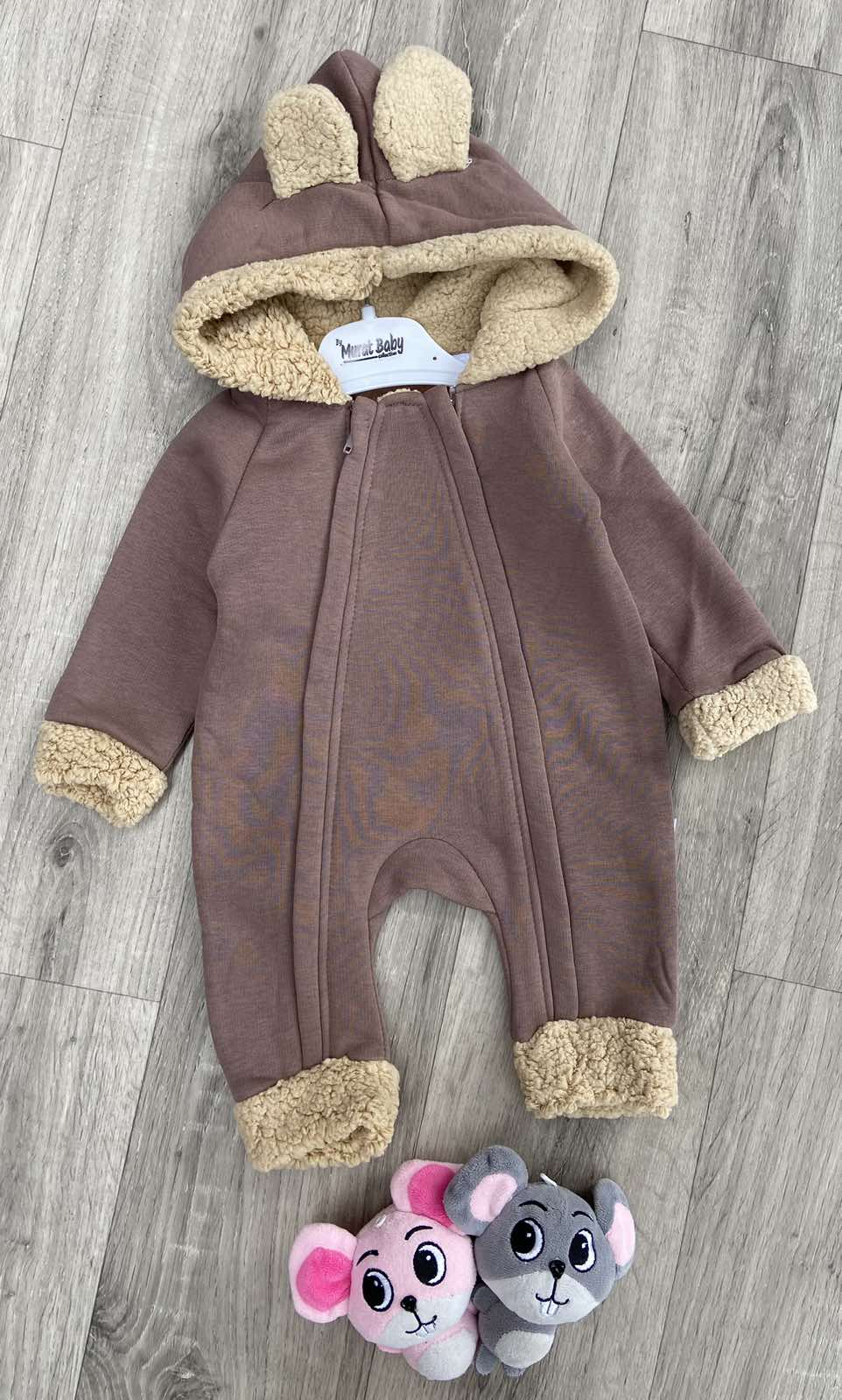 Чоловічок Partner "Вушки" коричневий, унісекс 3-6-9-12 місяців оптом уп. - 4 шт.